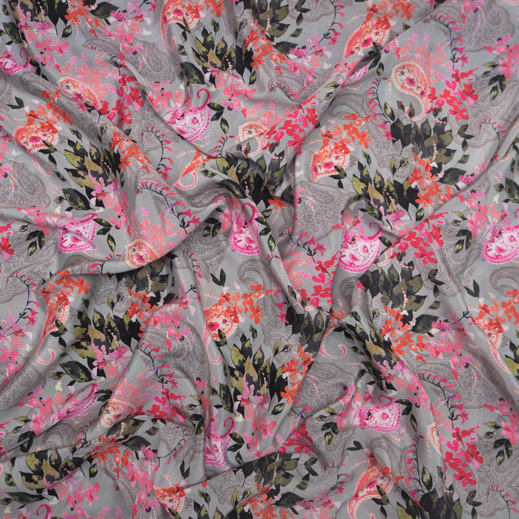 Product name: Grey Crepe Fabric in Floral Digital Print