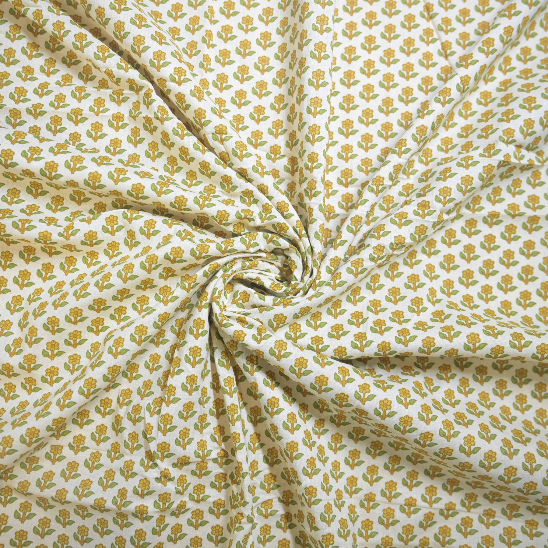 Product name: Lemon Yellow Mini Floral Buti Printed Cotton FabricĀ