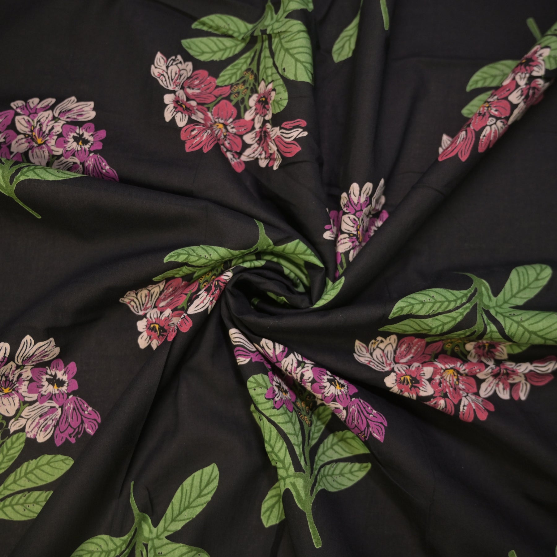 Product name: Midnight Bloom Black Floral Cotton Printed Fabric