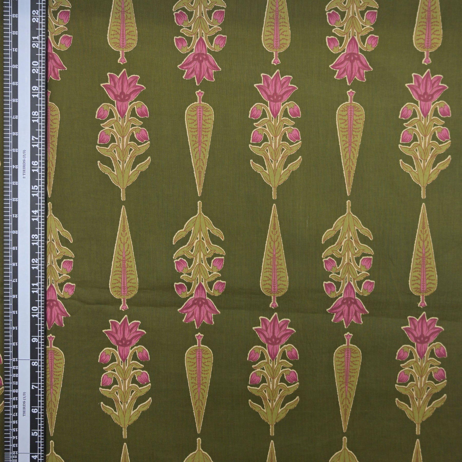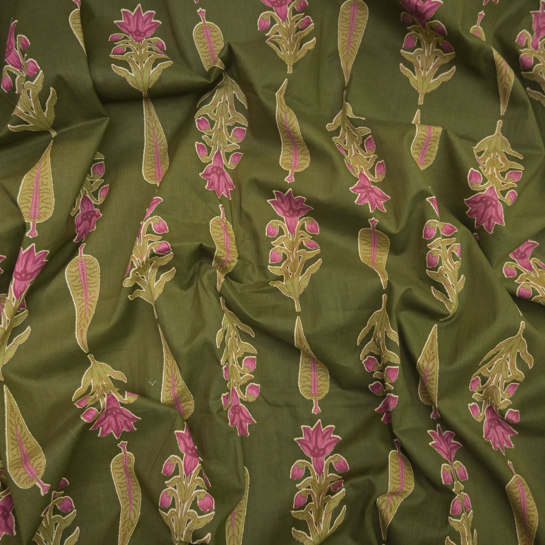 Bring timeless charm to your creations with this Olive Green Cotton Fabric adorned with beautiful allover Floral prints.