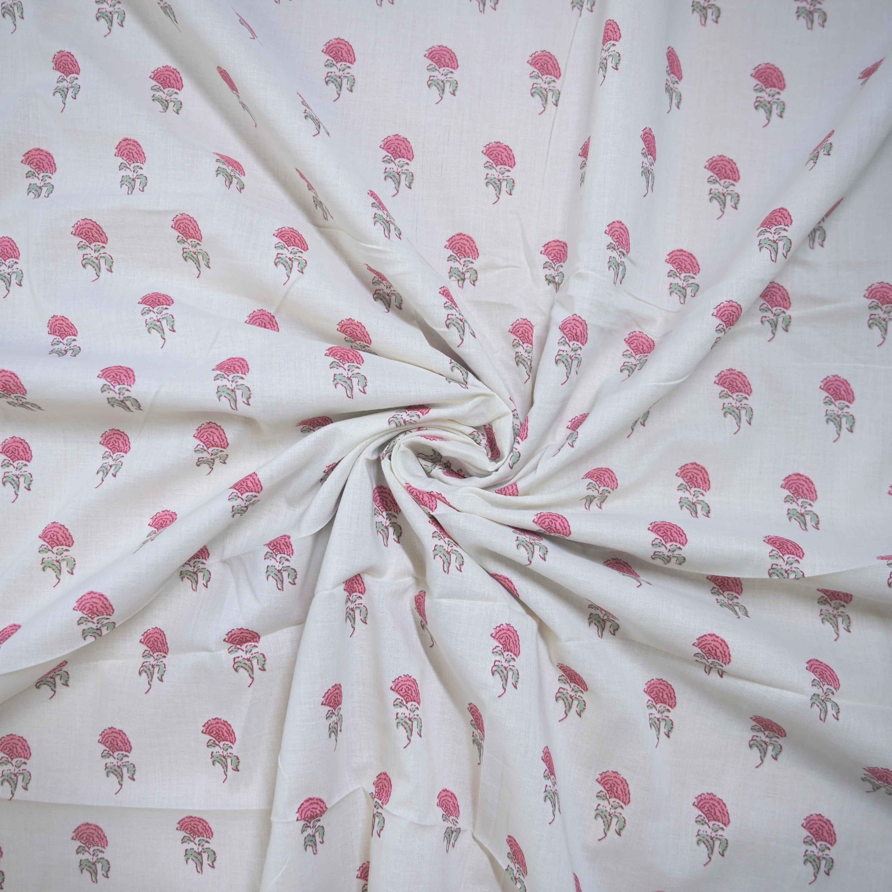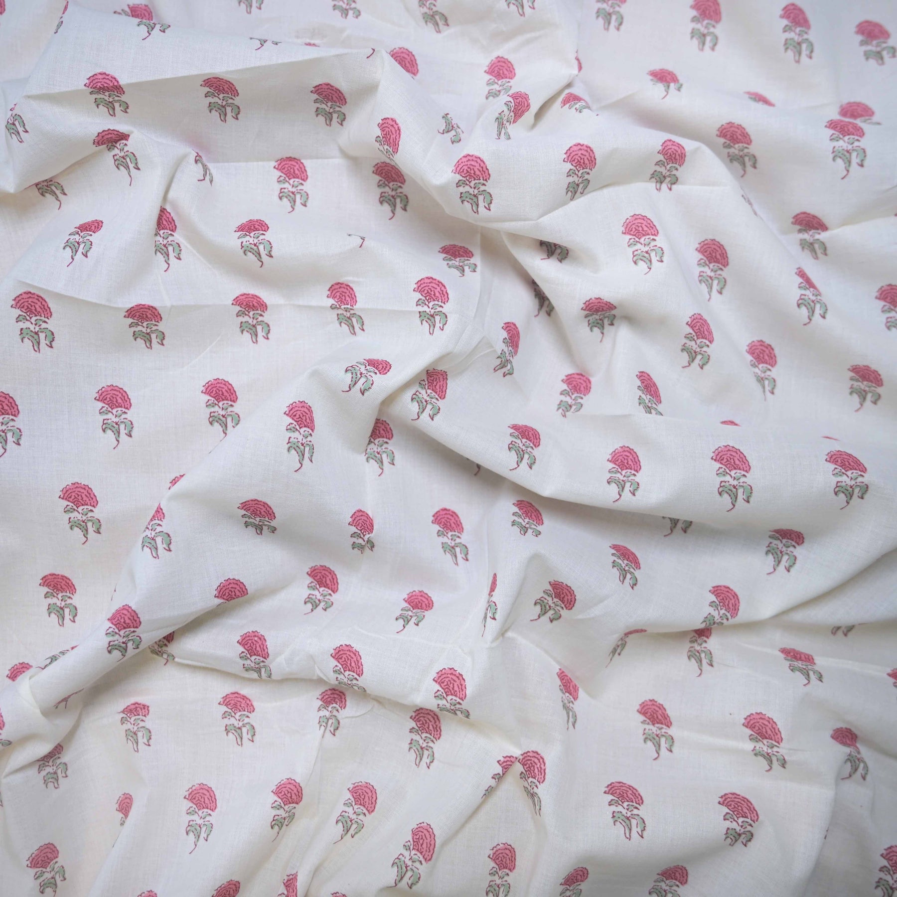 Product name: Pink Mini Floral Bagru Printed Cotton Fabric