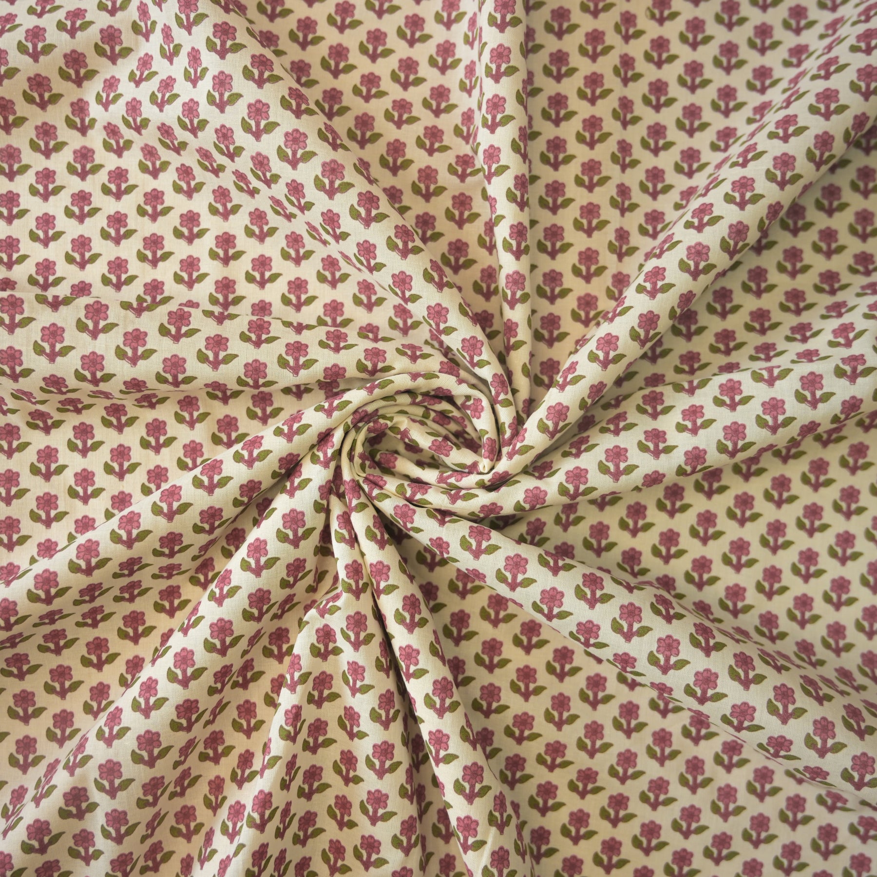 Subtle, graceful, and endlessly wearable, this Pink Mini Floral Buti Printed Cotton Fabric features a soft cream base highlighted with finely spaced floral butis in muted rose pink and olive green. Ideal for everyday elegance with a handcrafted feel.