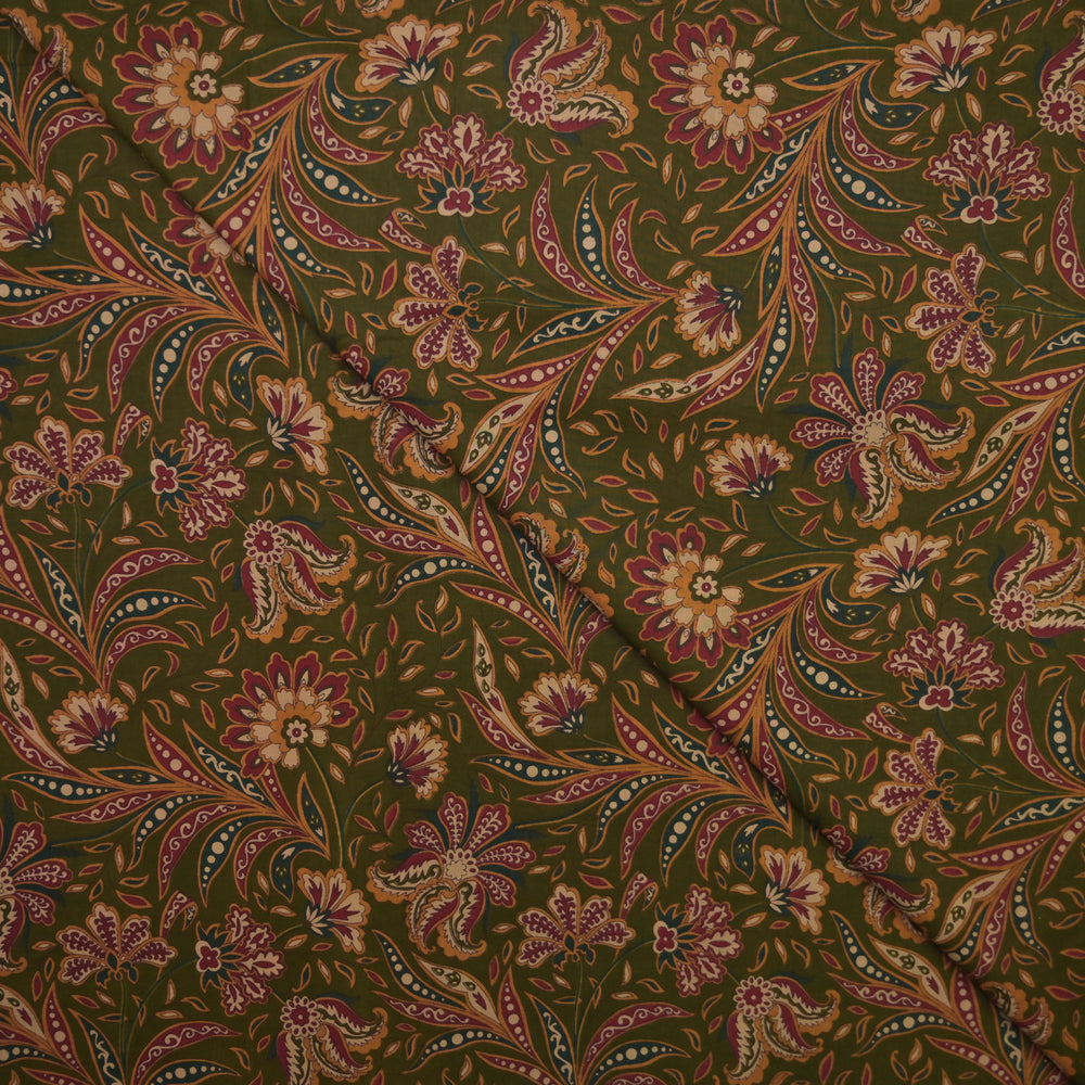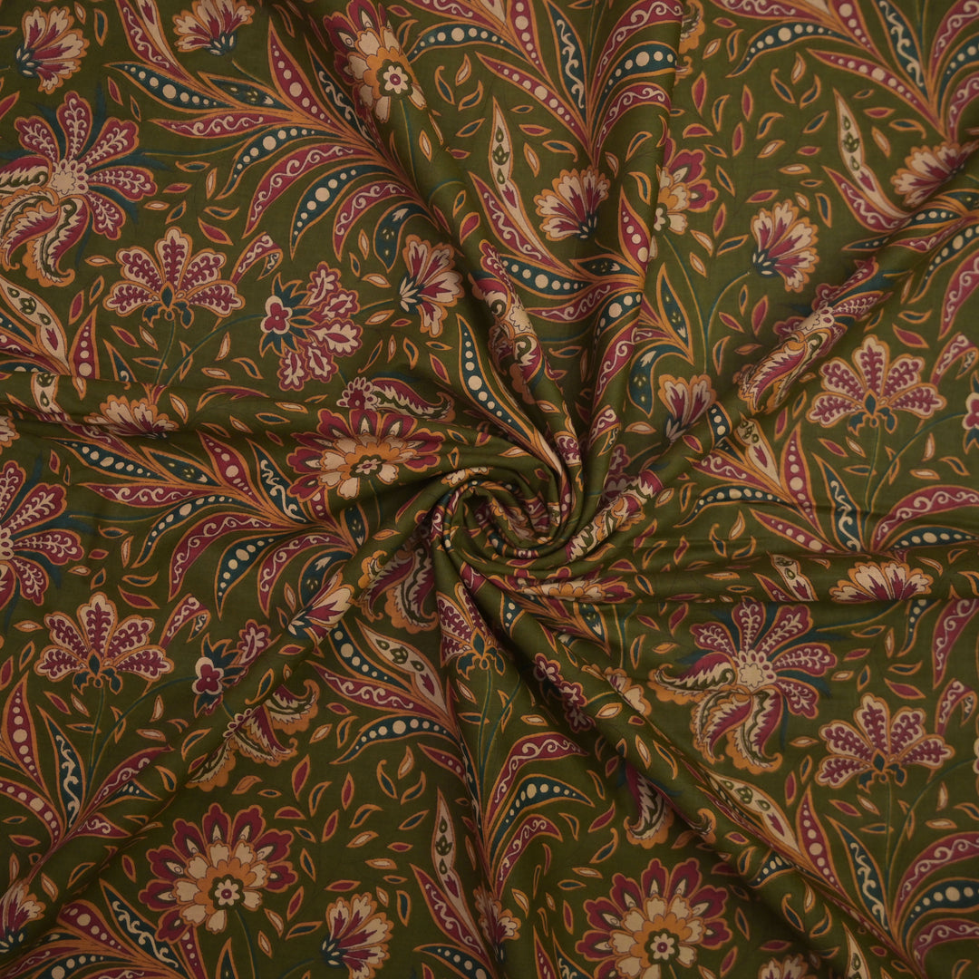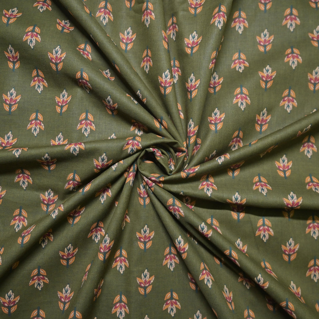 Mehendi Green Cotton Fabric with allover Leaf Butti Print