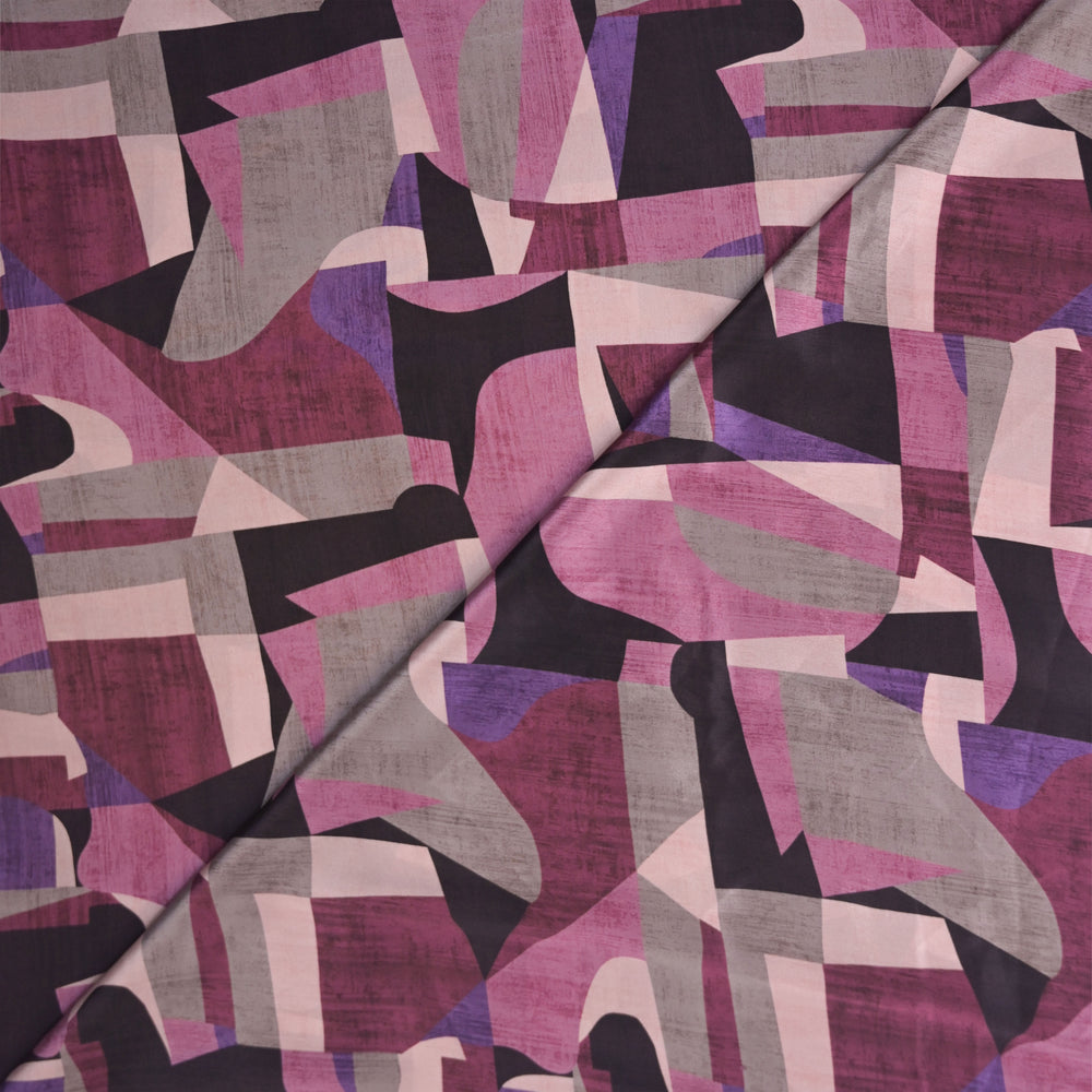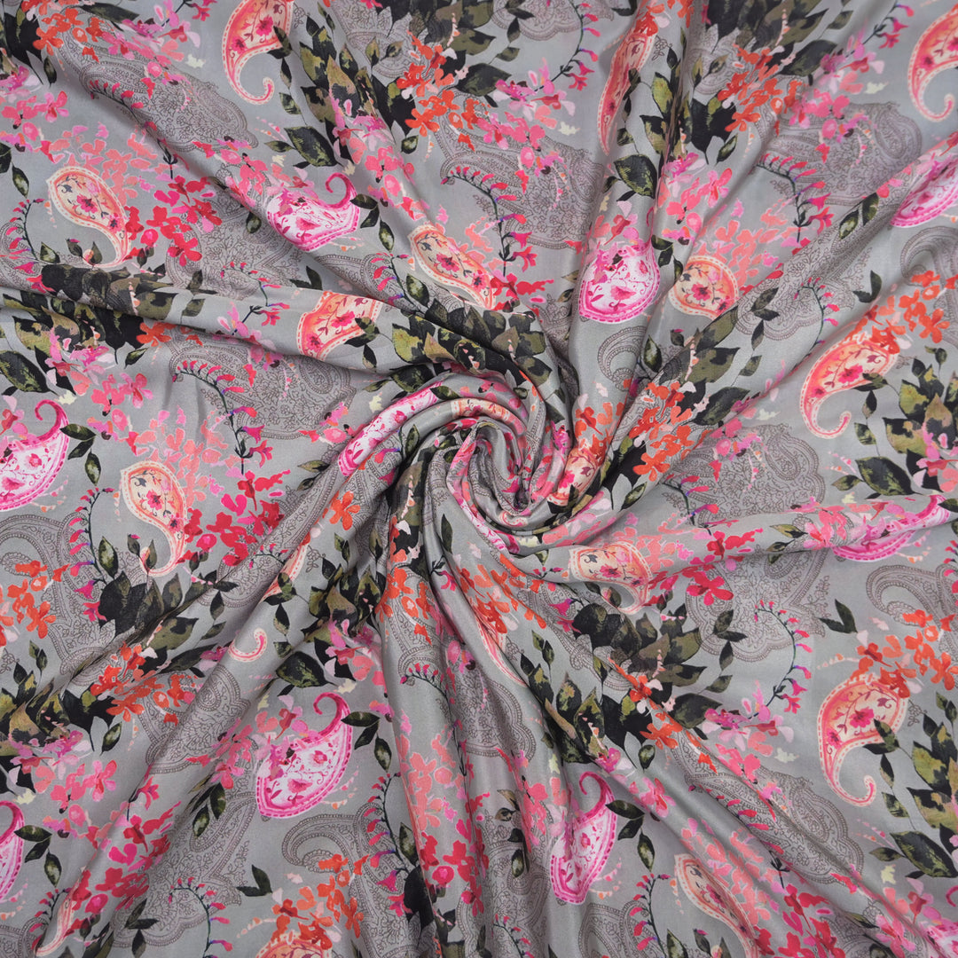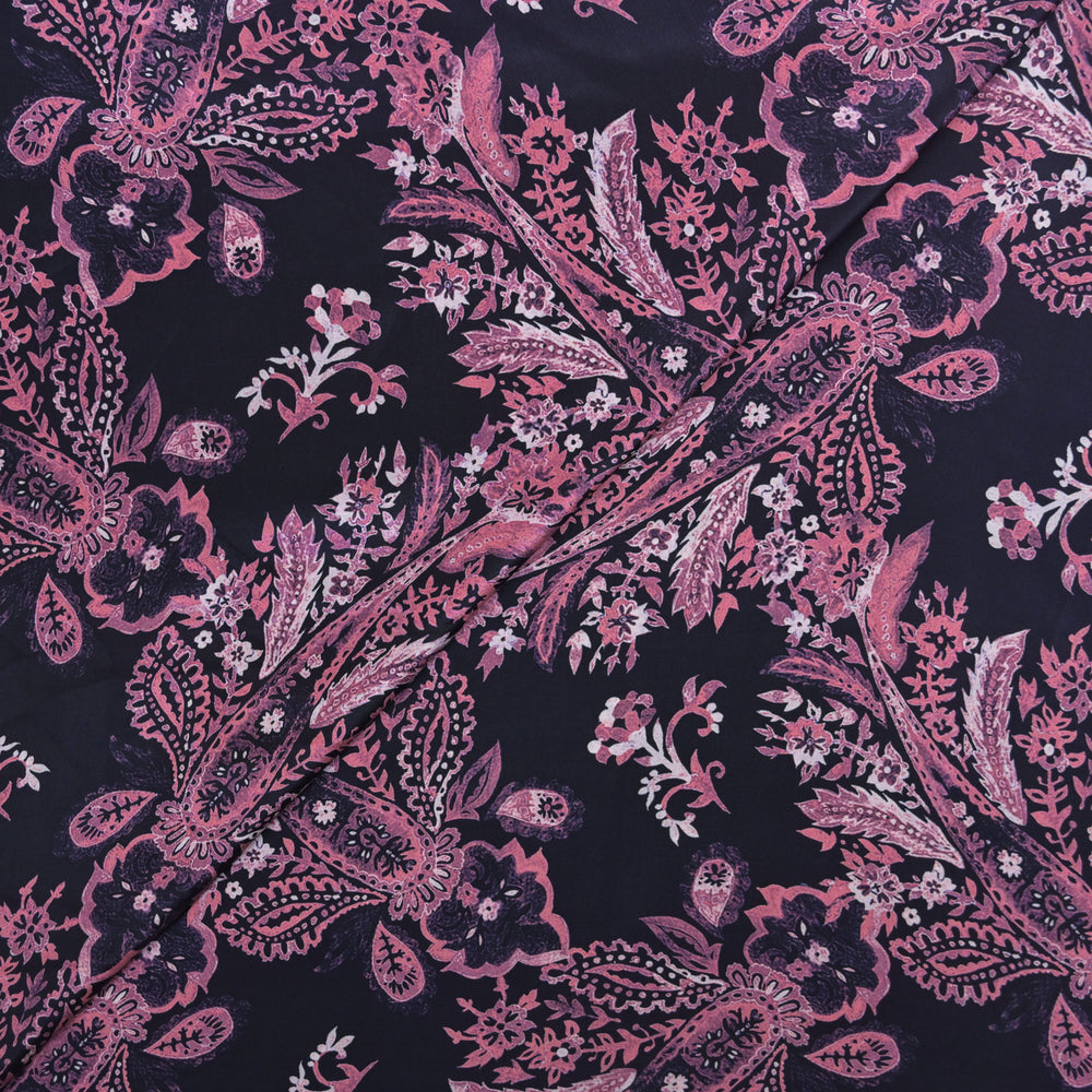 Dark Purple Crepe Fabric in Paisley Motifs Digital Print