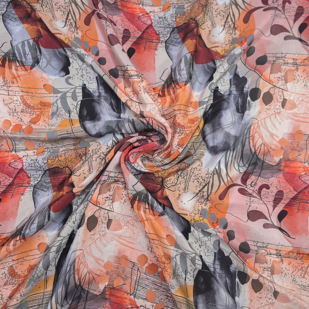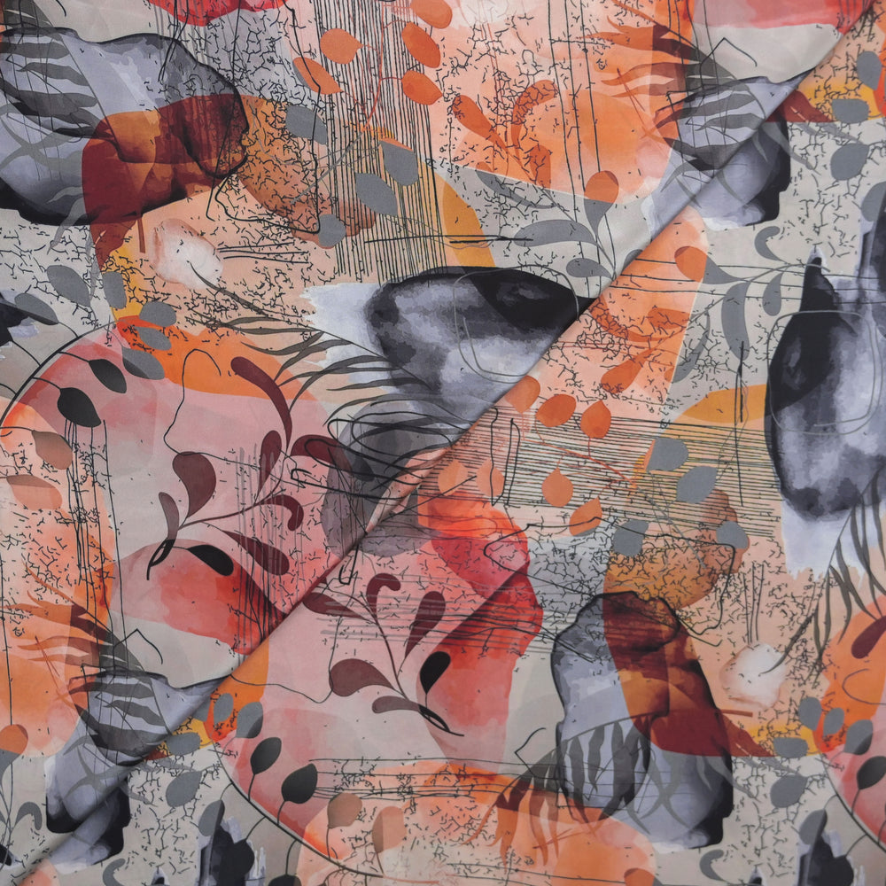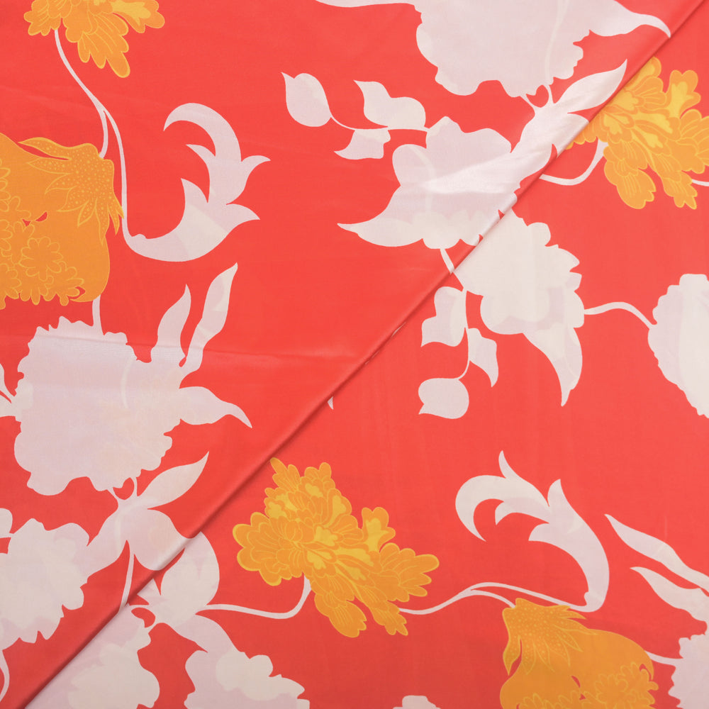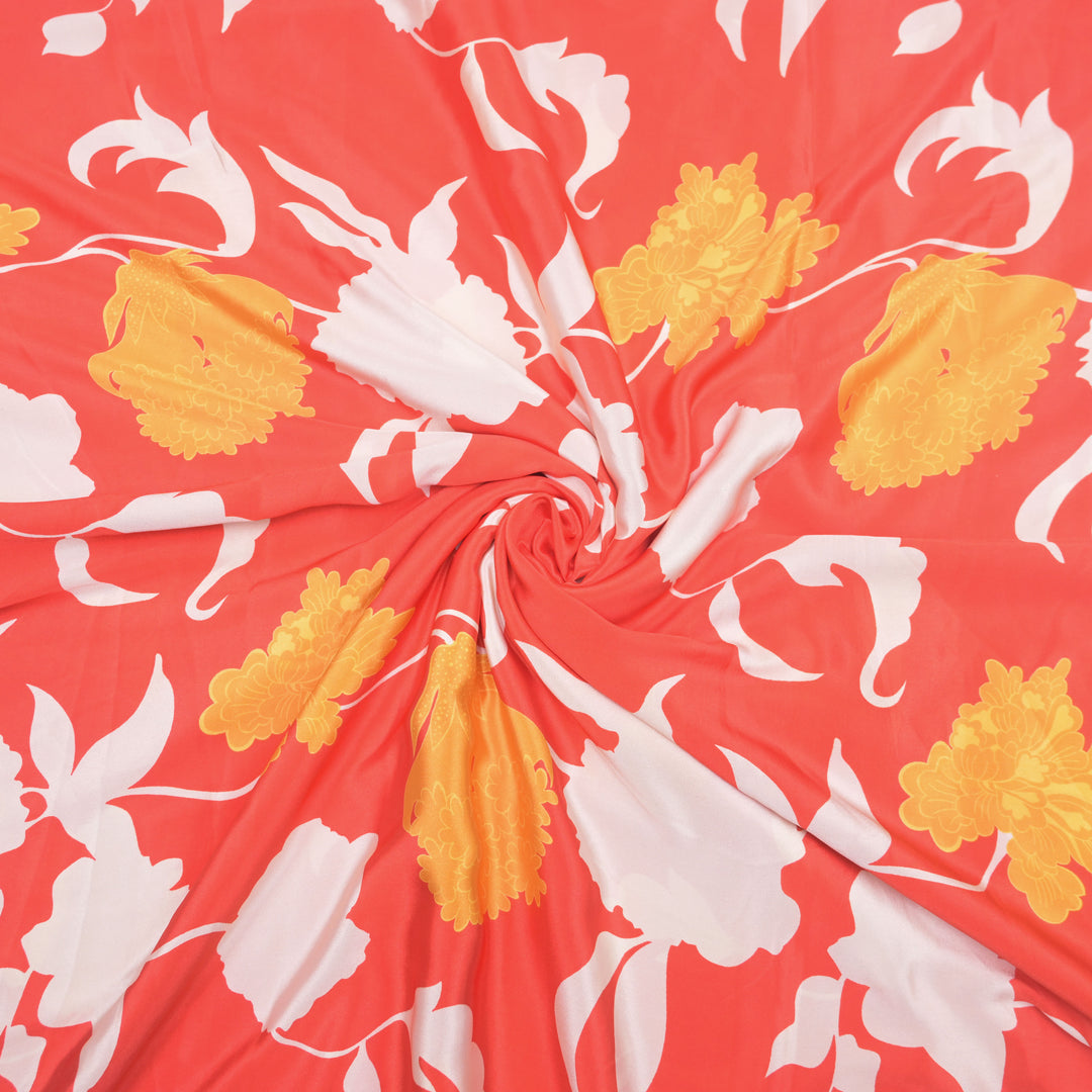 Bright Red Crepe Fabric in Yellow Abstract Digital Print