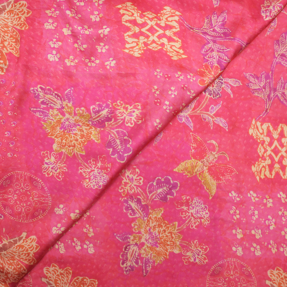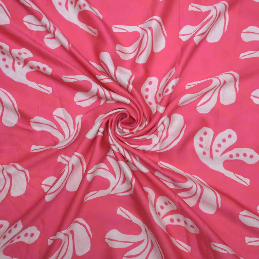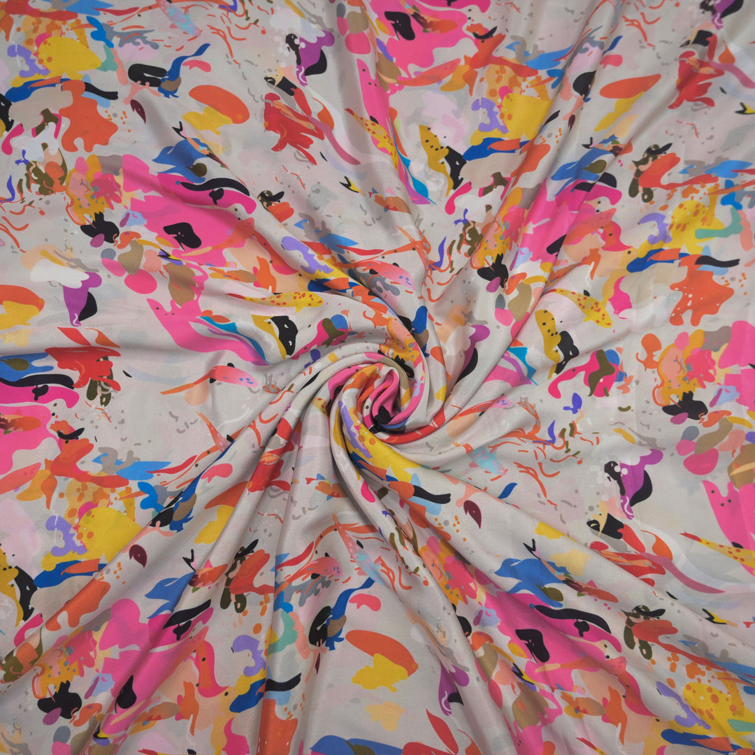 Bright Red Crepe Fabric in Yellow Abstract Digital Print
