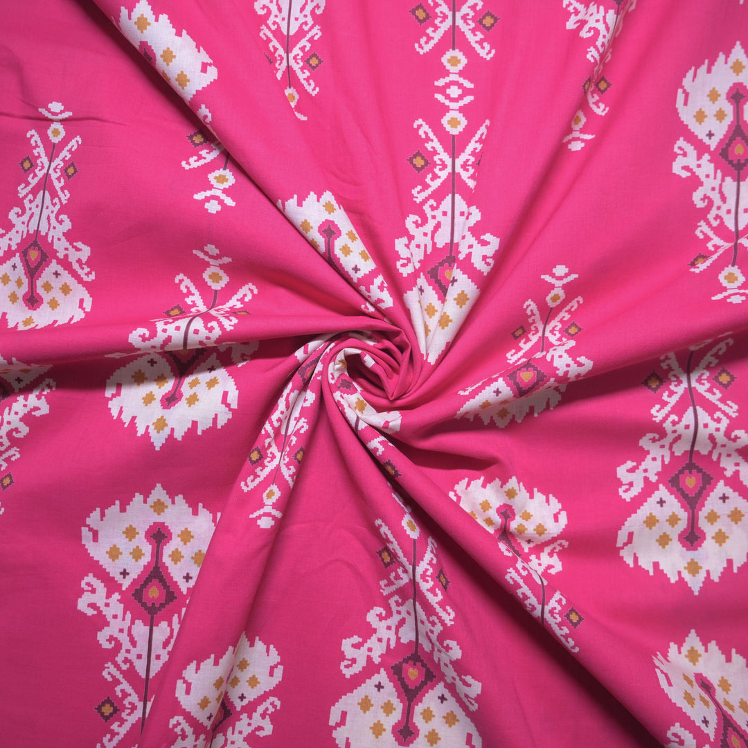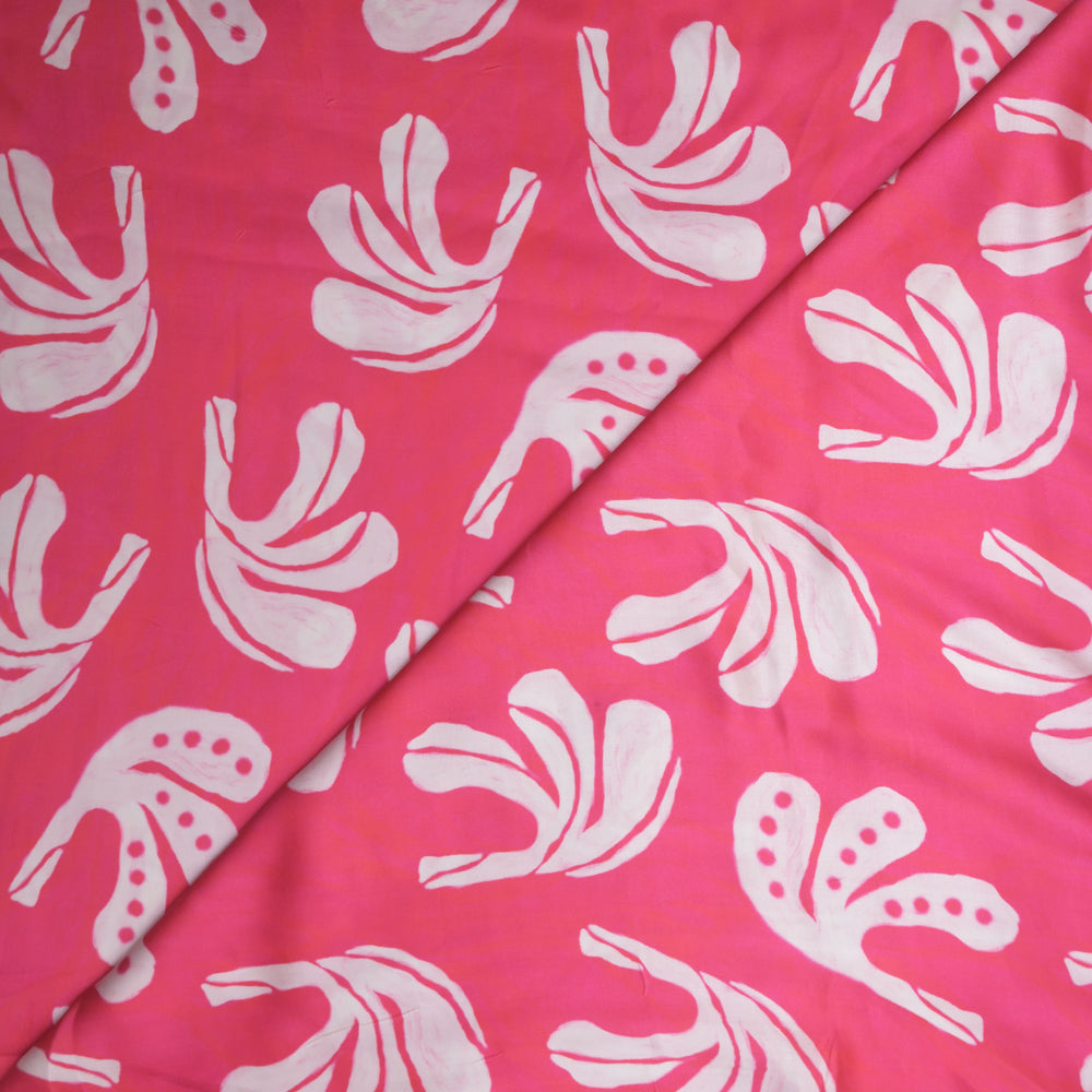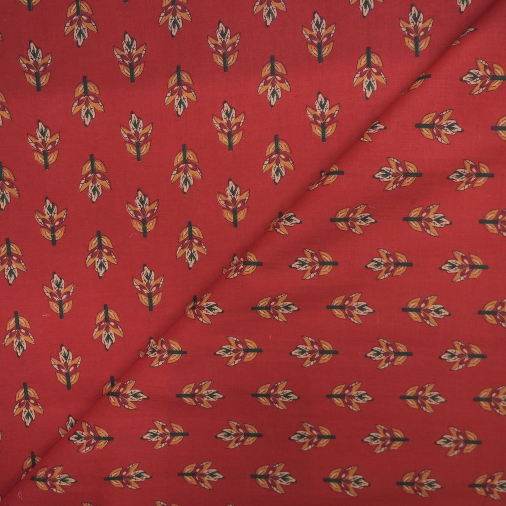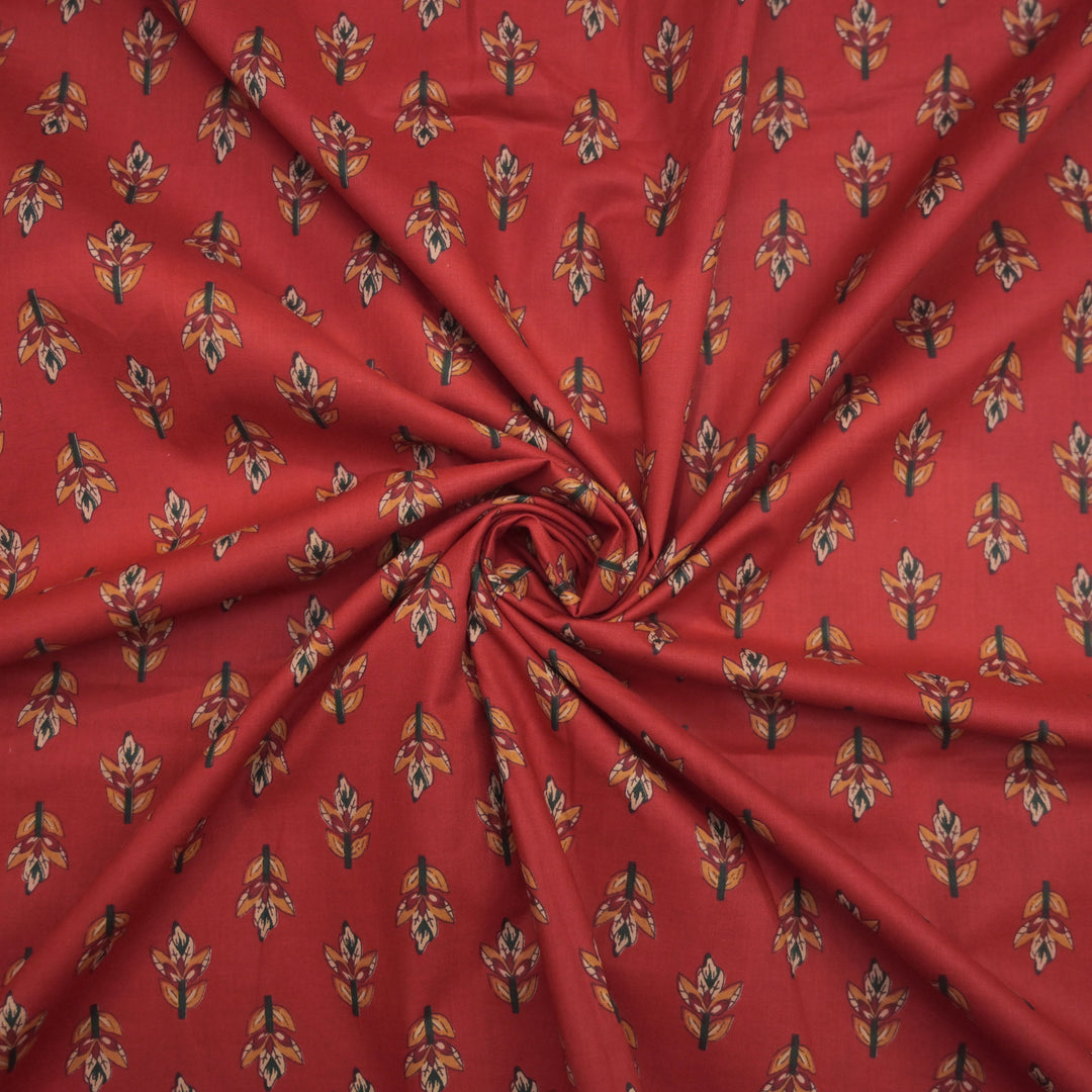 Deep Red Cotton Fabric with allover Leaf Butti Print