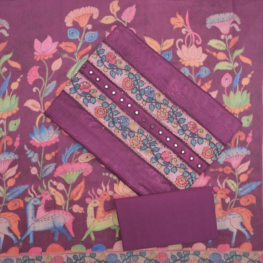 Midnight Lavender Faux Tussar Silk Unstitched Suit Set