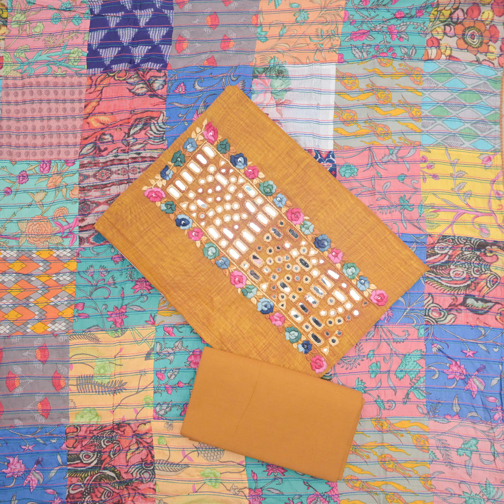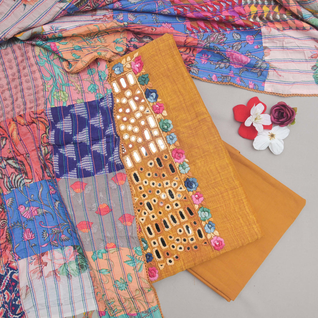 Mustard Yellow Tussar Silk Unstitched Suit Set