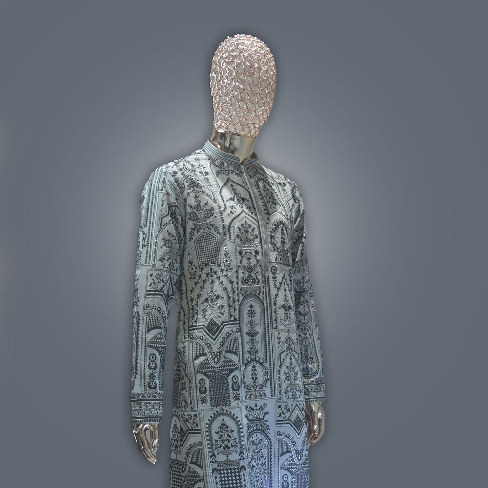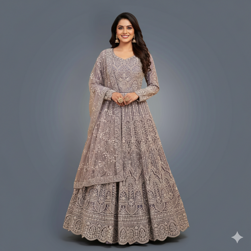 Smokey Grey Designer Bridal Lehenga Dress with Heavy Zari, Cutdana and Hand Embroidery