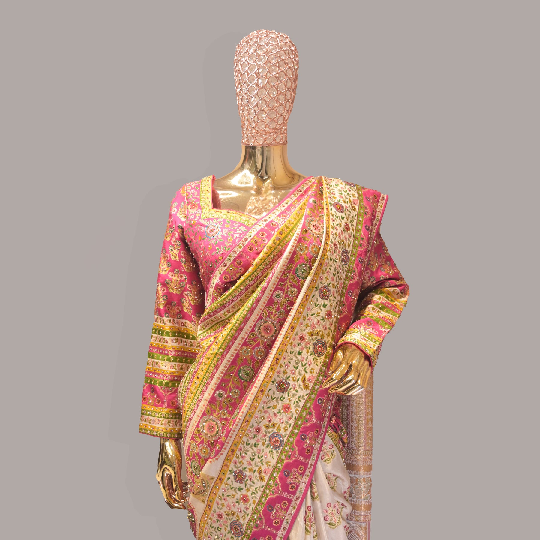 Noor-e-Gulab Ivory & Pink Banarasi Saree