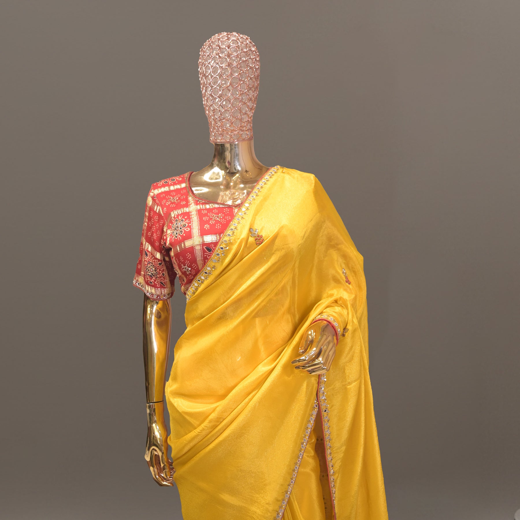 Suvarna Yellow Ghatchola Crepe Silk Saree
