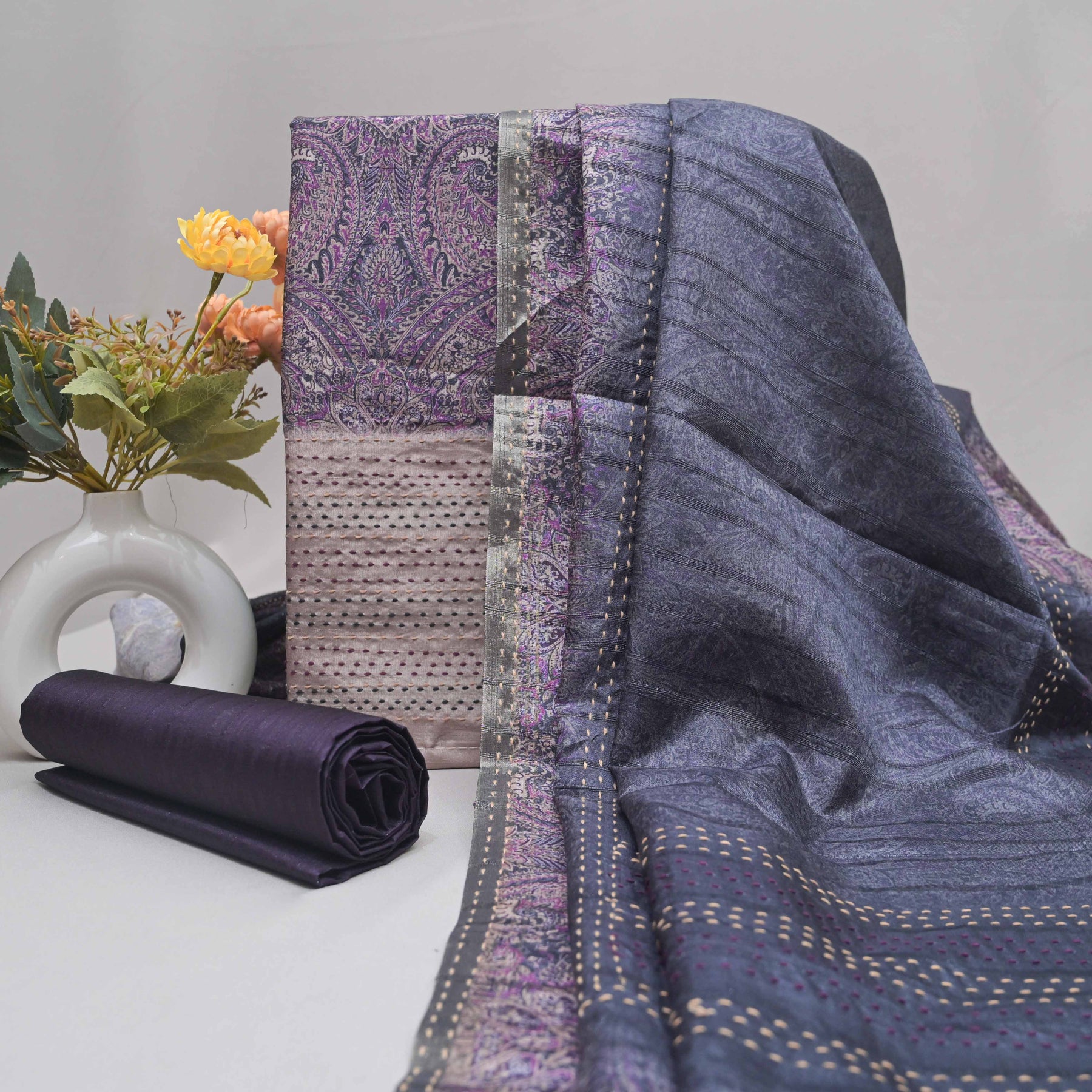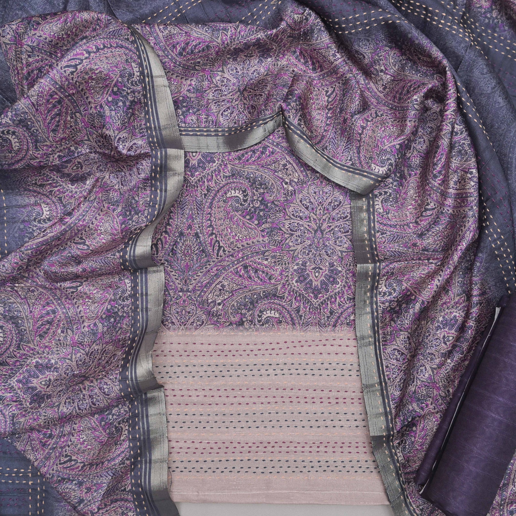 Midnight Lavender Faux Tussar Silk Unstitched Suit Set