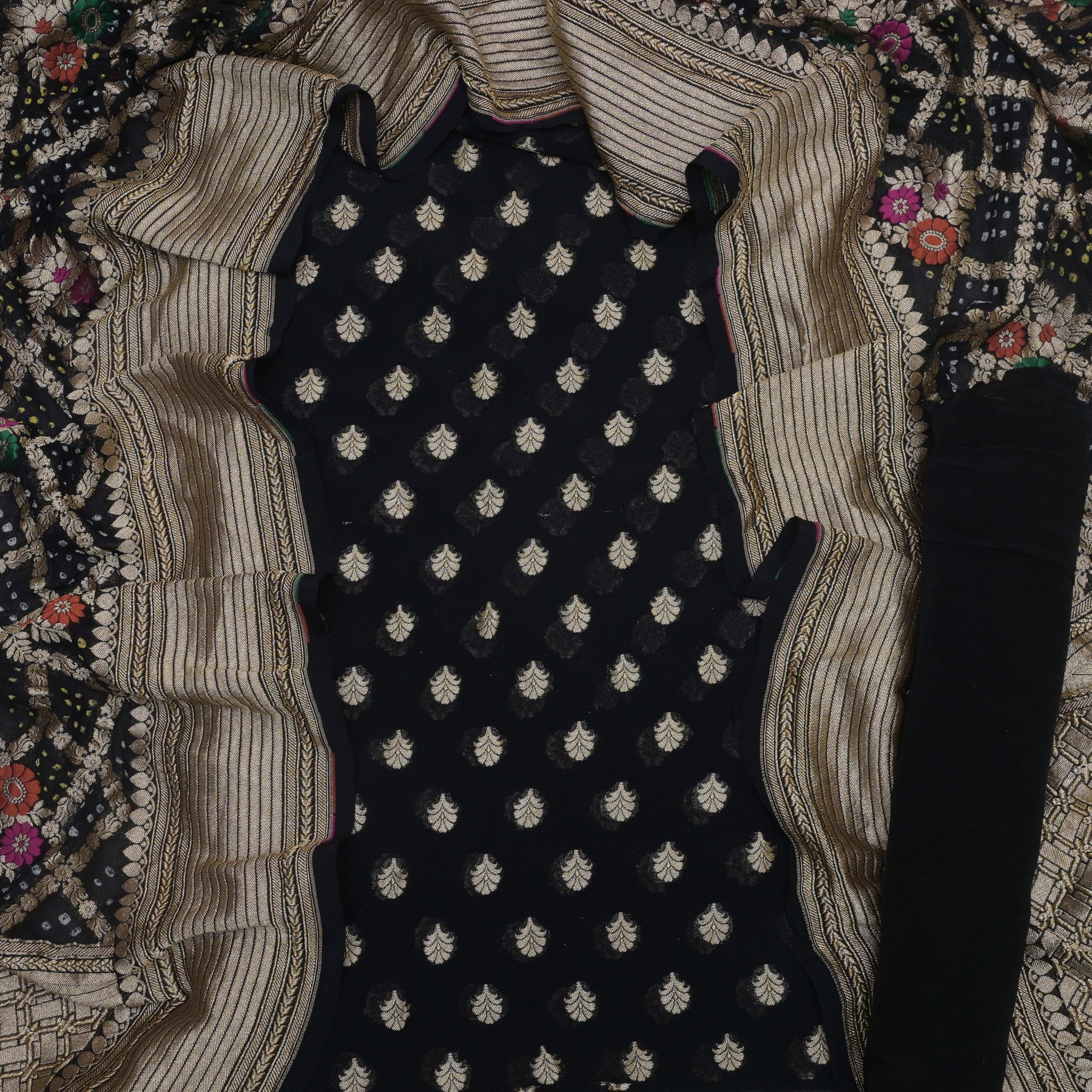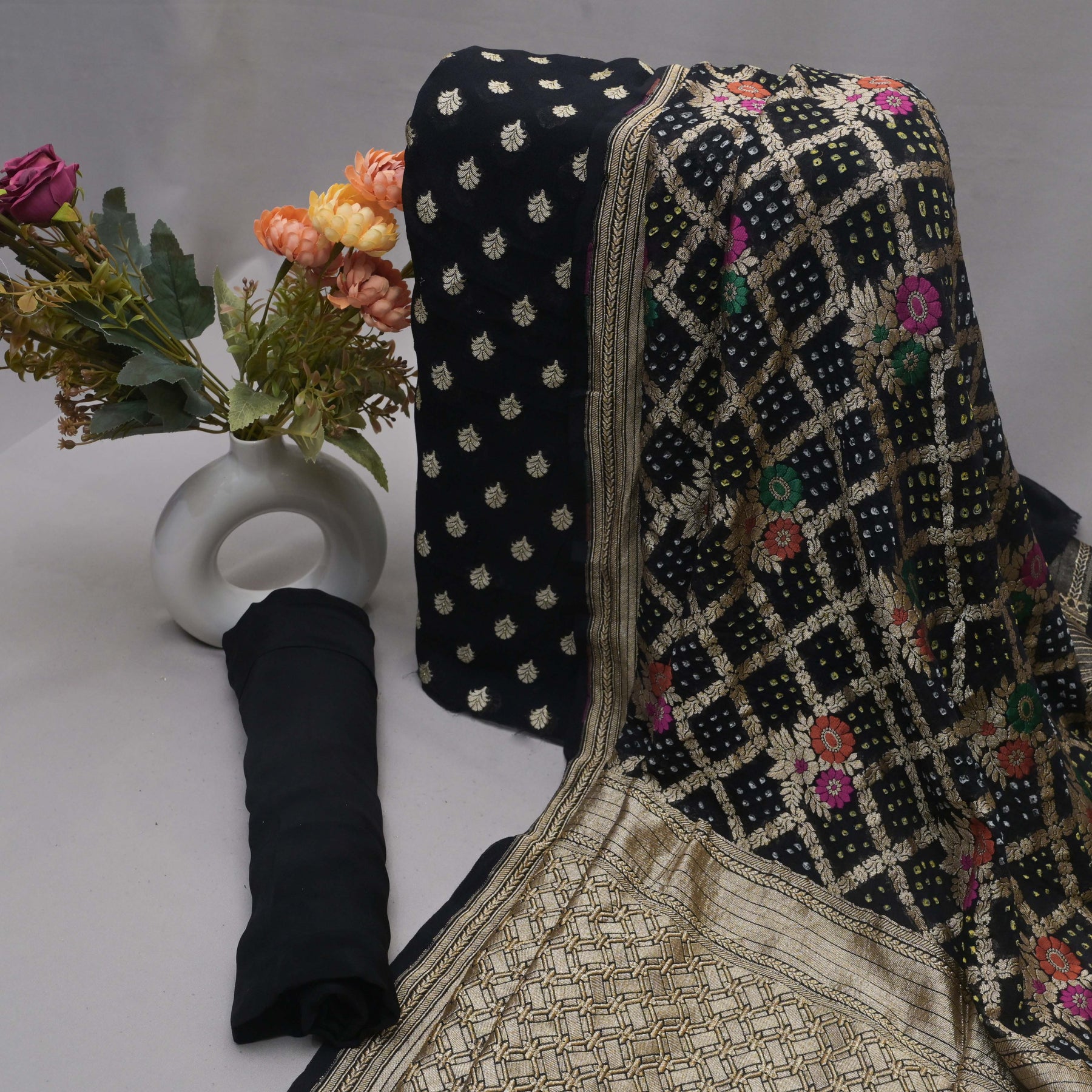 Elevate your ethnic wardrobe with this elegant Black Zari Embroidery Unstitched Suit, crafted from premium-quality fabric and adorned with rich zari embroidery. The deep purple hue exudes royal charm, while the intricate zari work adds a luxurious festive appeal. Designed as an unstitched set, it allows complete customization for a flawless fit and personalized style.