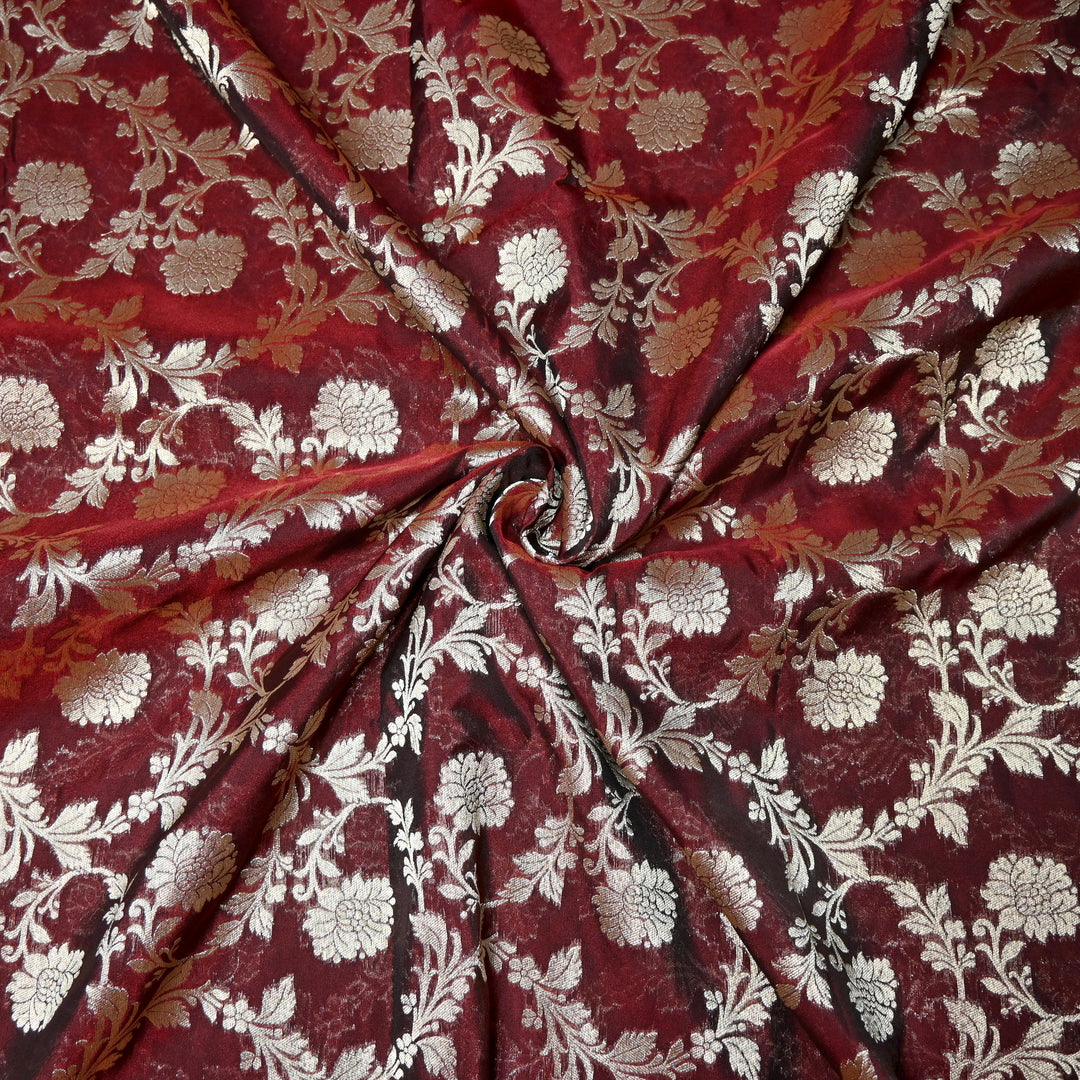 Brandy & Red Colour Pure Banarasi Silk Saree