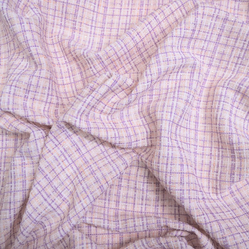 Light Lilac Tweed Fabric with Zari work | 39-50510