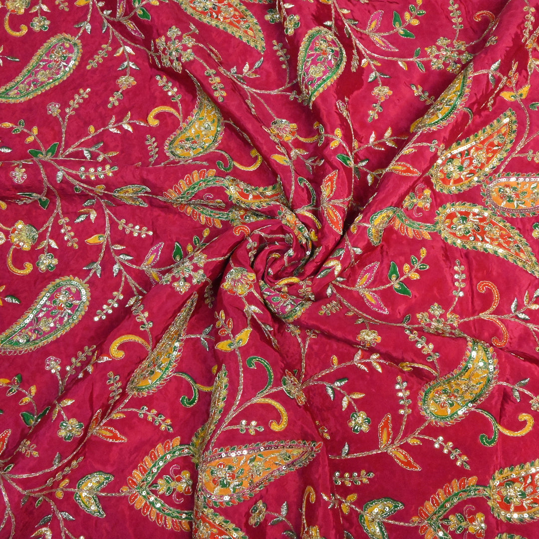 Crepe Position Print Zari With Sequins Embroidery Fabrics