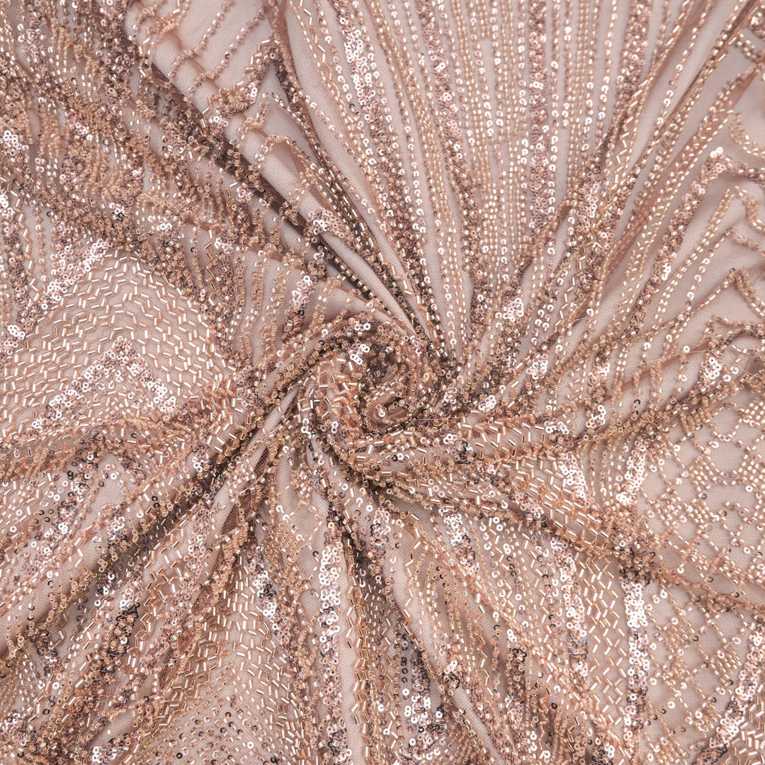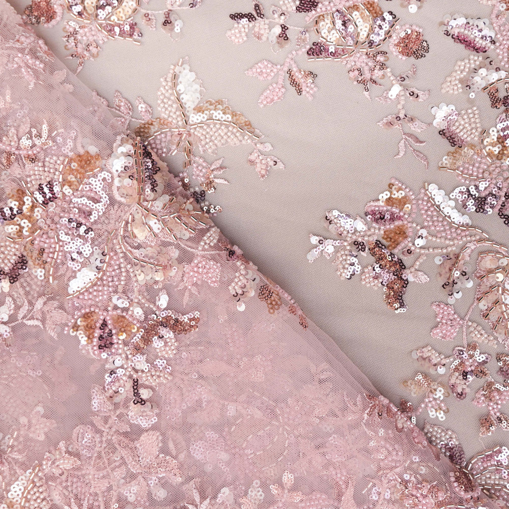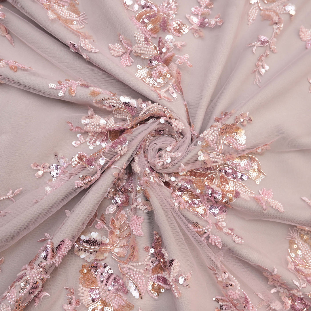 Baby Pink Net Fabric with allover Cutdana & Sequins Embroidery