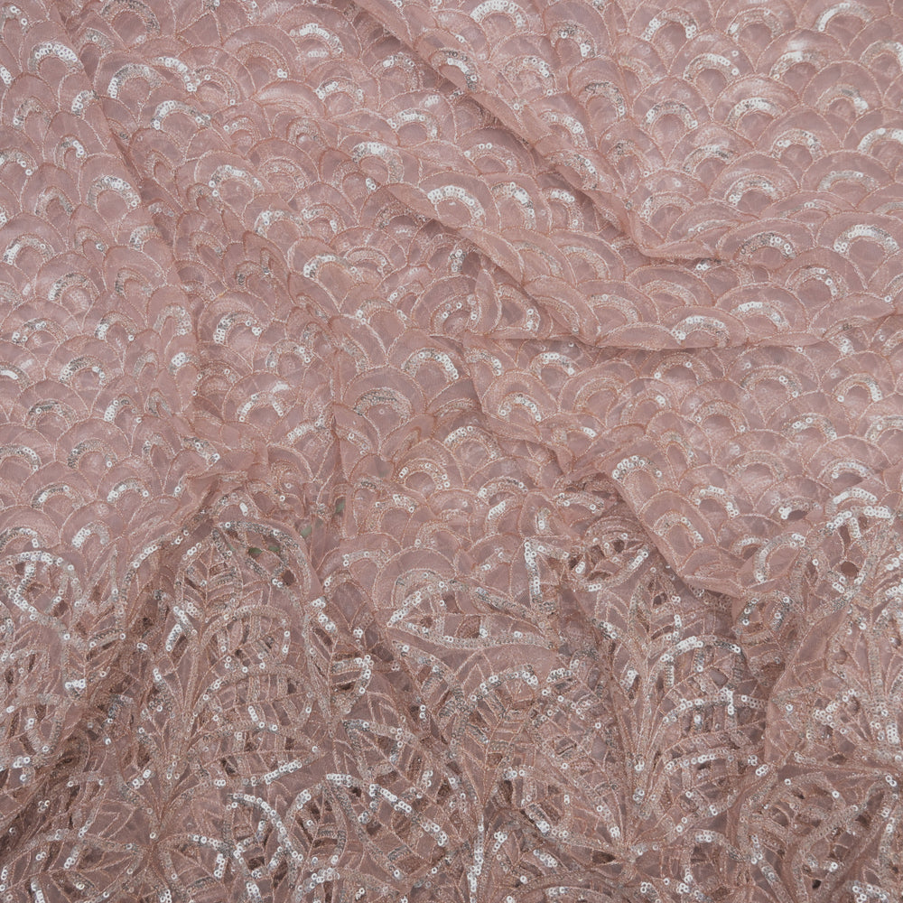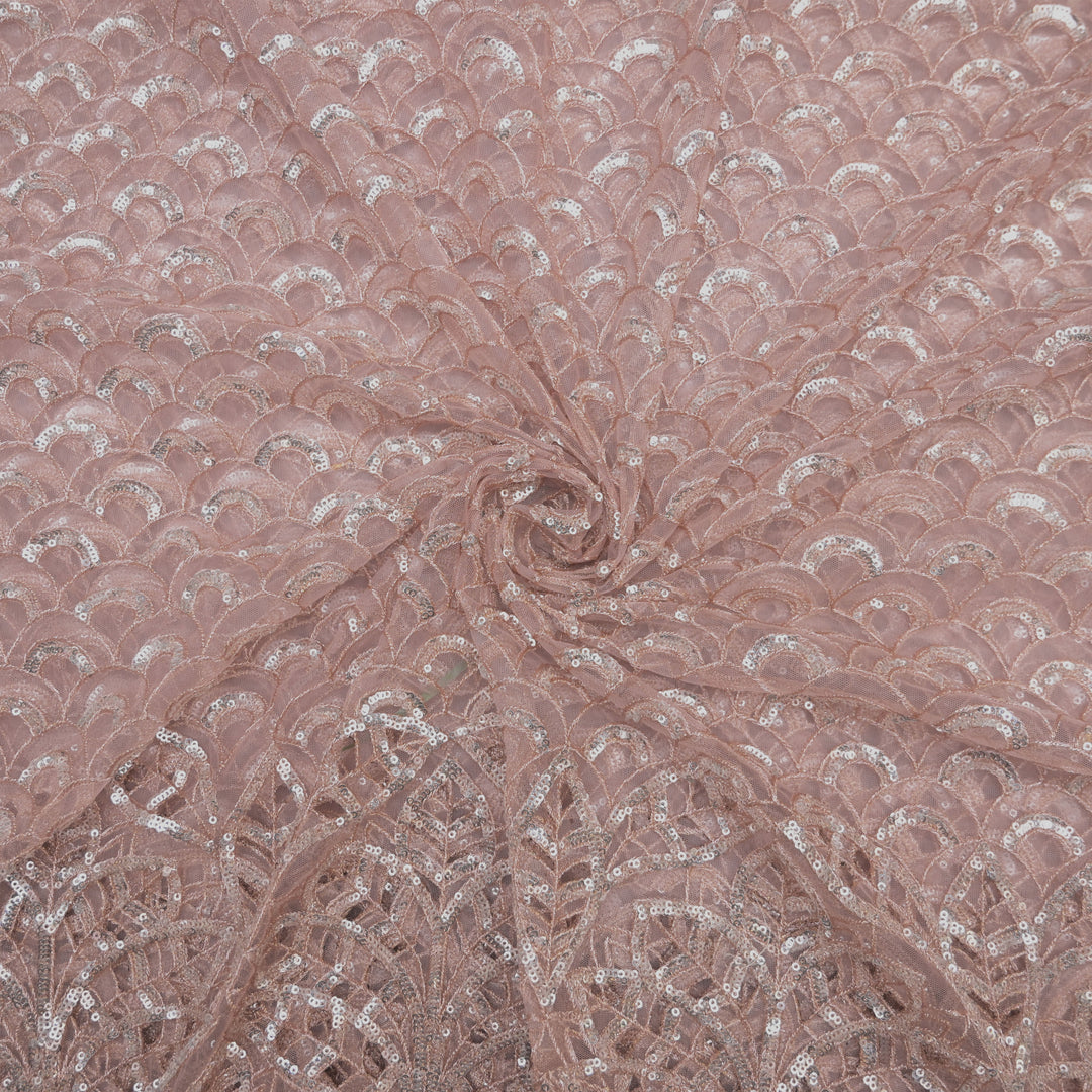 Baby Pink Mermaid Net Fabric with Cutwork & Sequins Embroidery