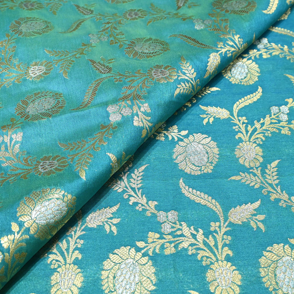 Teal Green Silk Meena Zari Brocade | B-22-185