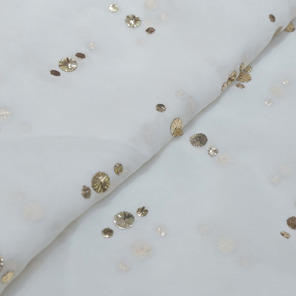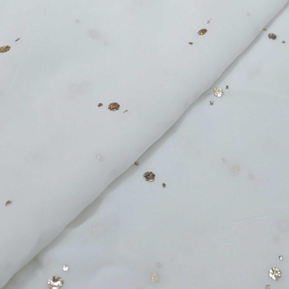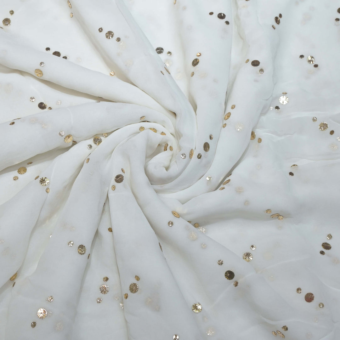 Viscose Georgette Mirror Cut Dana Sequins Embroidery Fabric