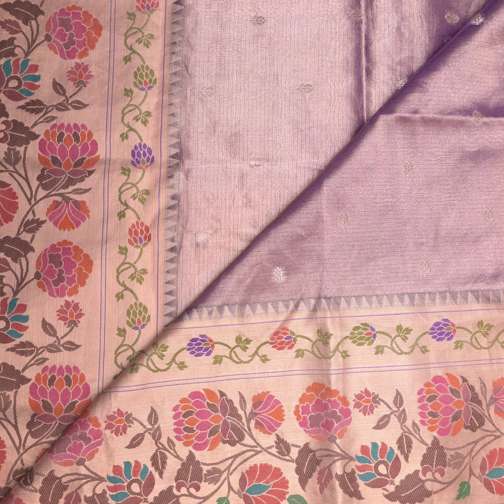 Violet Brocade Tissue Fabric with Threadwork Embroidery