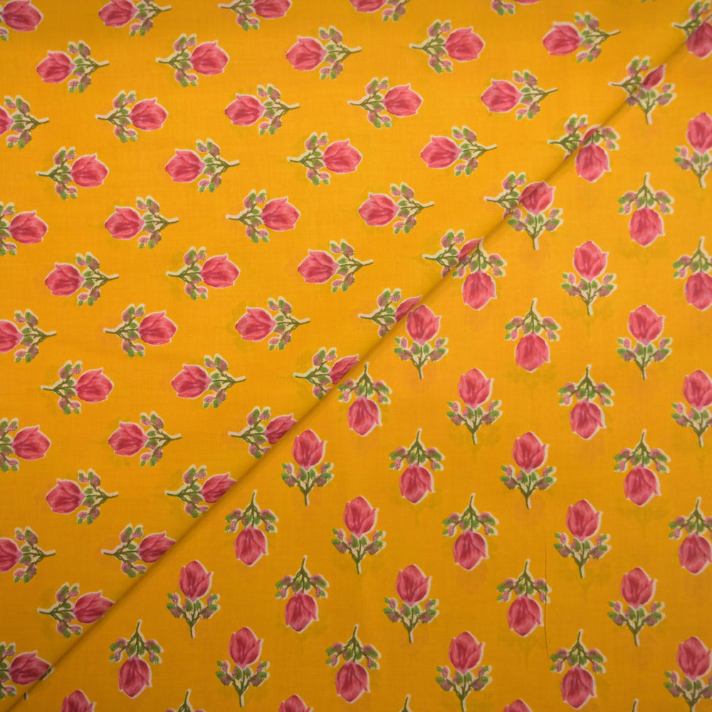 Yellow Mini Floral Bagru Printed Cotton Fabric