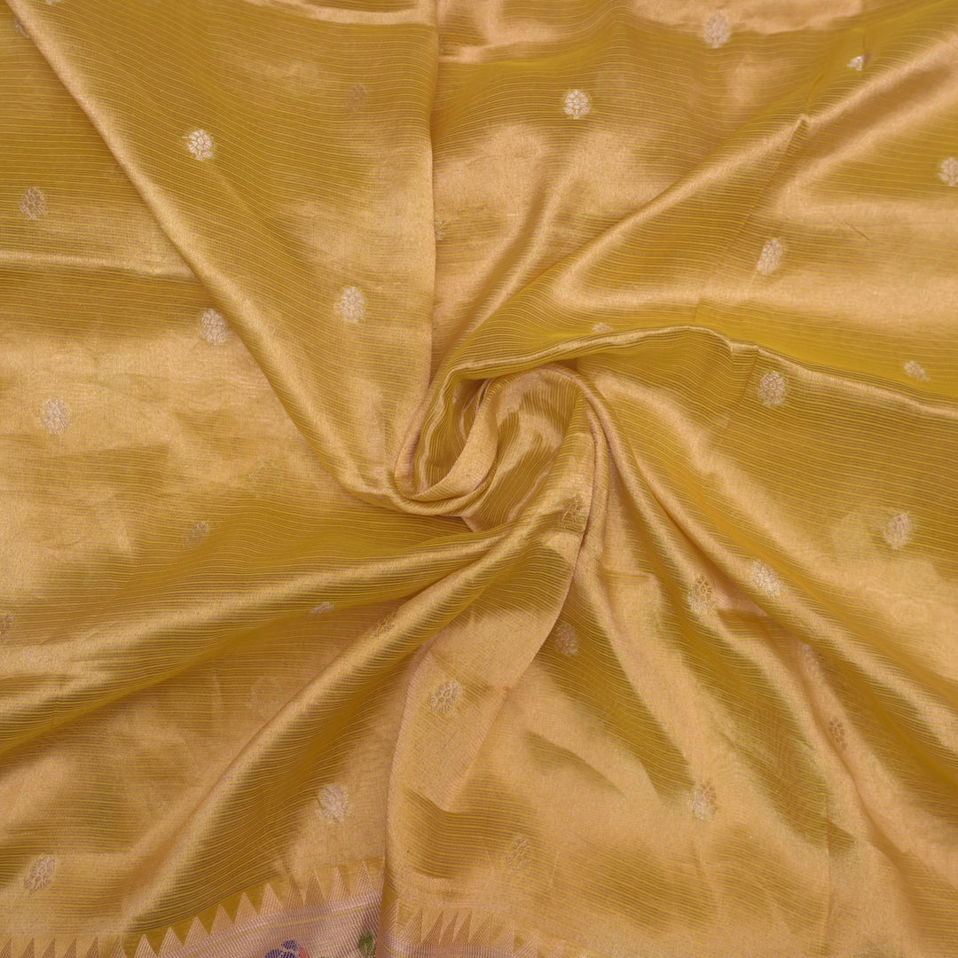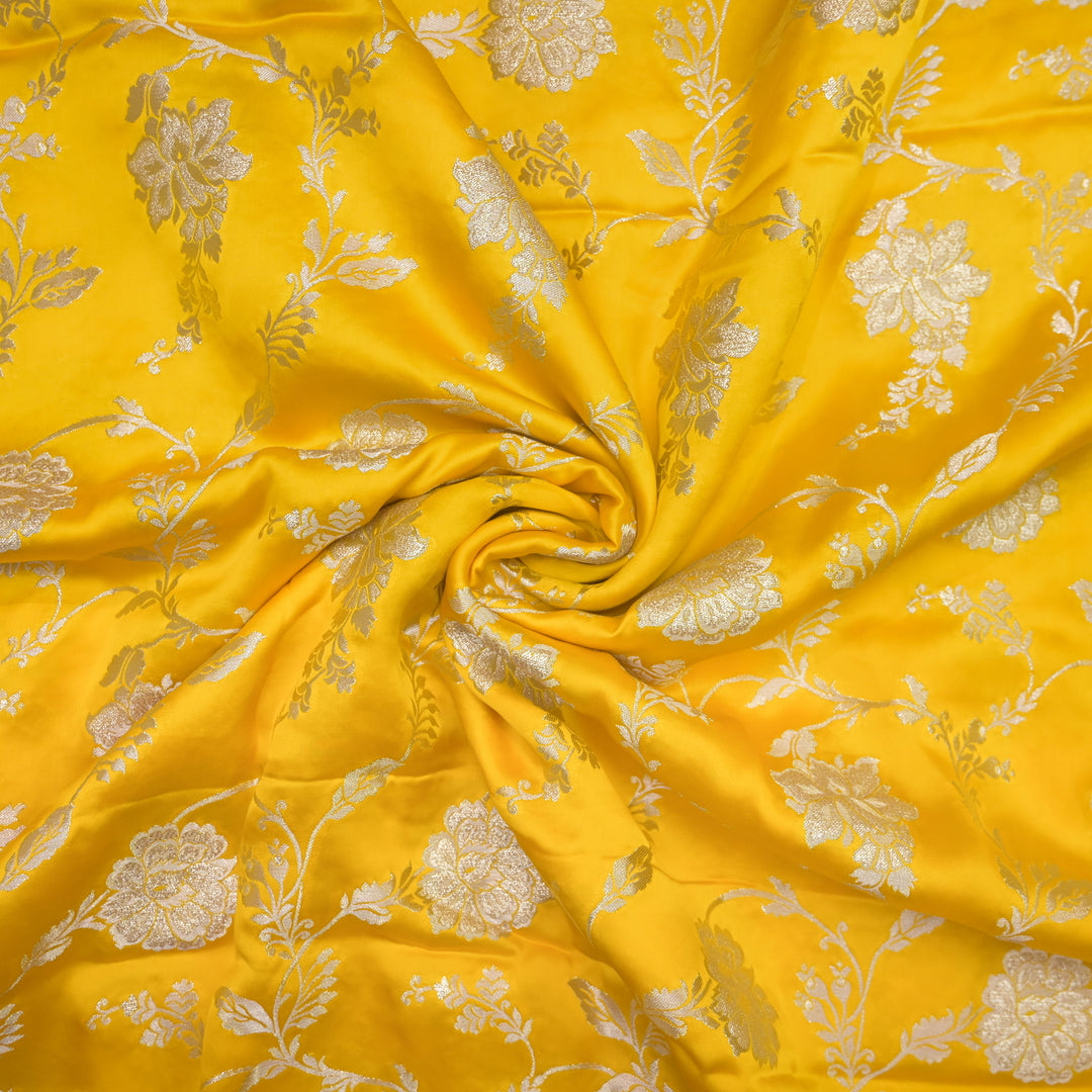 Yellow Brocade Tissue Fabric with Threadwork Embroidery