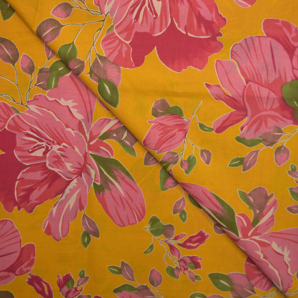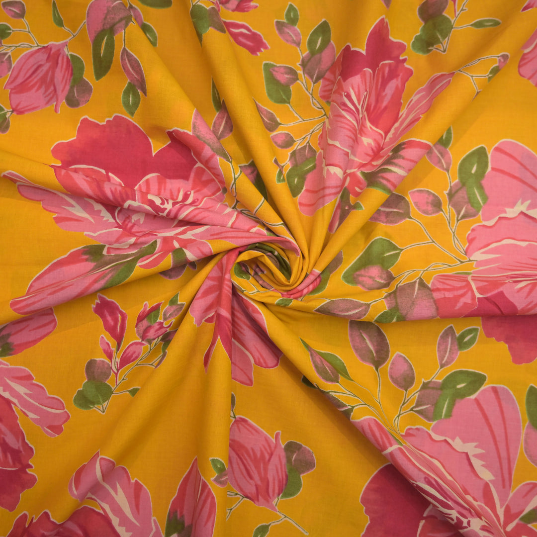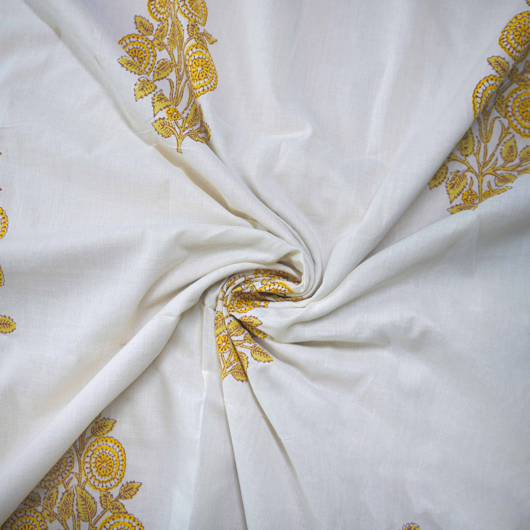 White Cotton Fabric with Mustard Yellow Gulnaar Print