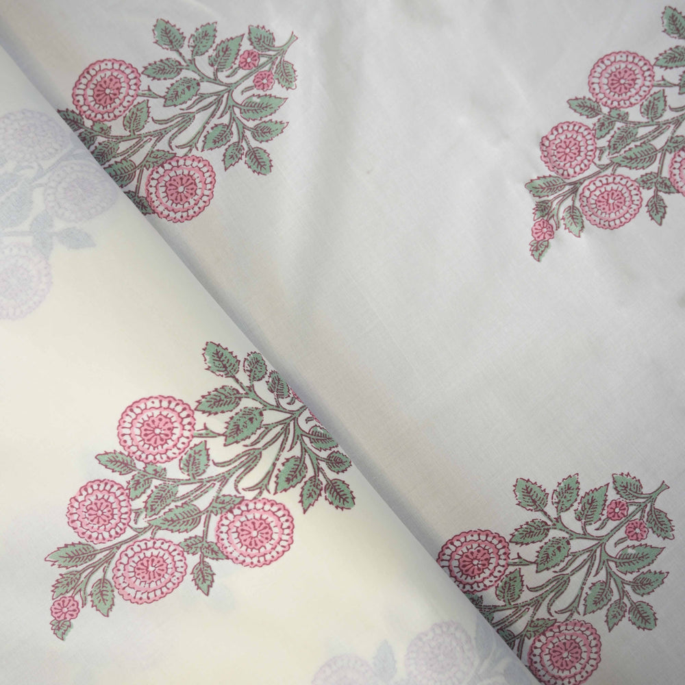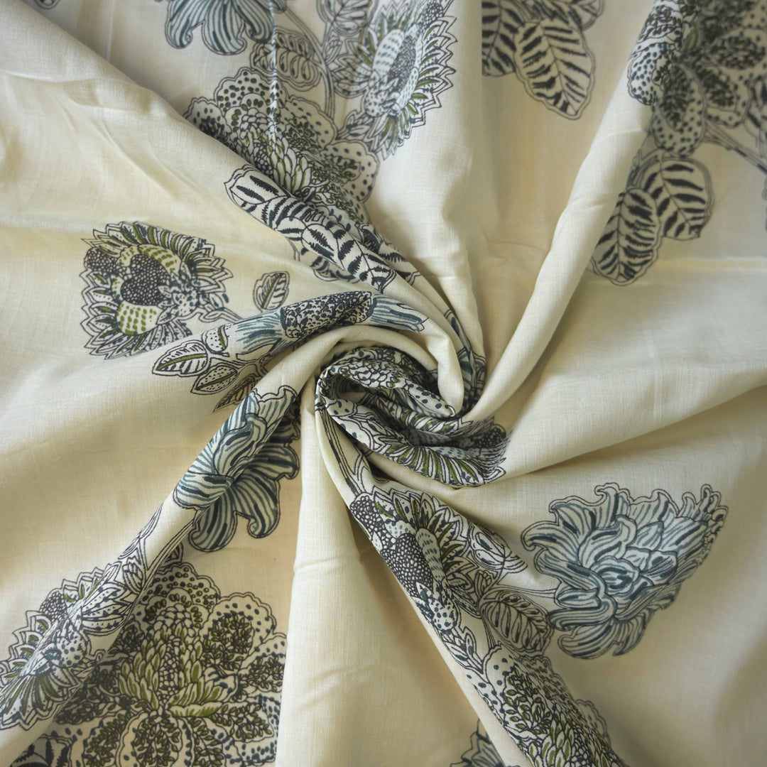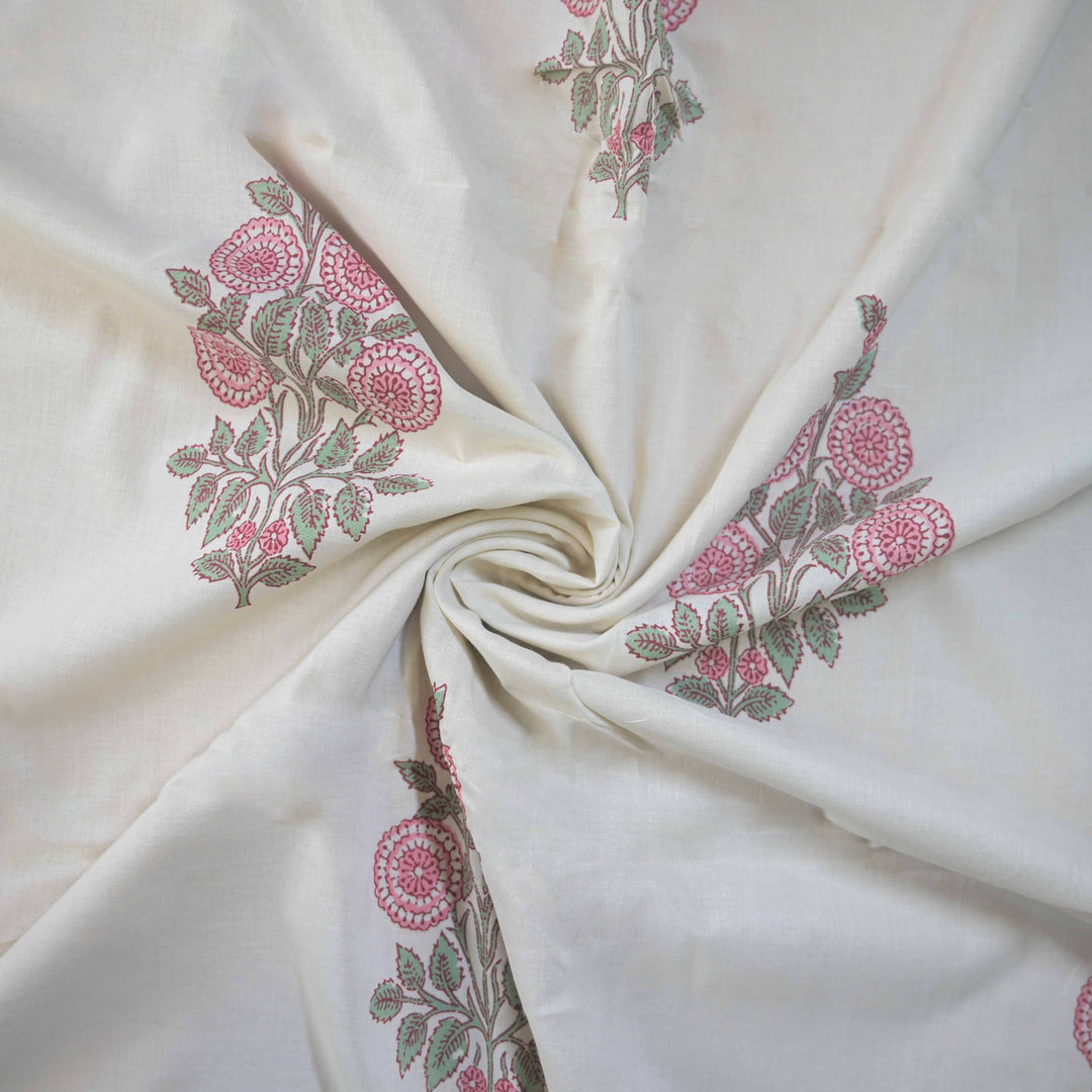 White Cotton Fabric with Mustard Yellow Gulnaar Print