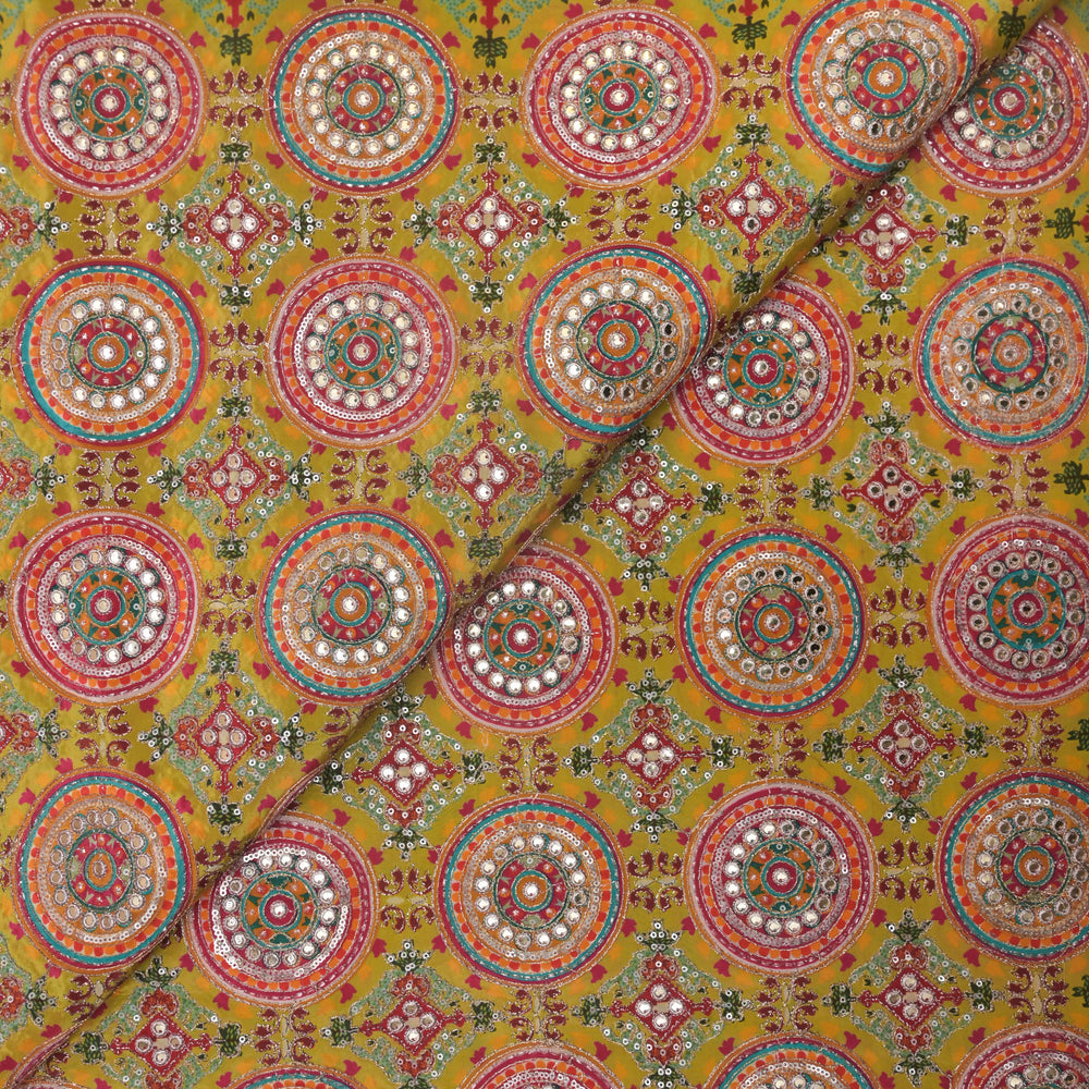 Yellow Colour Georgette Sequins Embroidery Fabrics