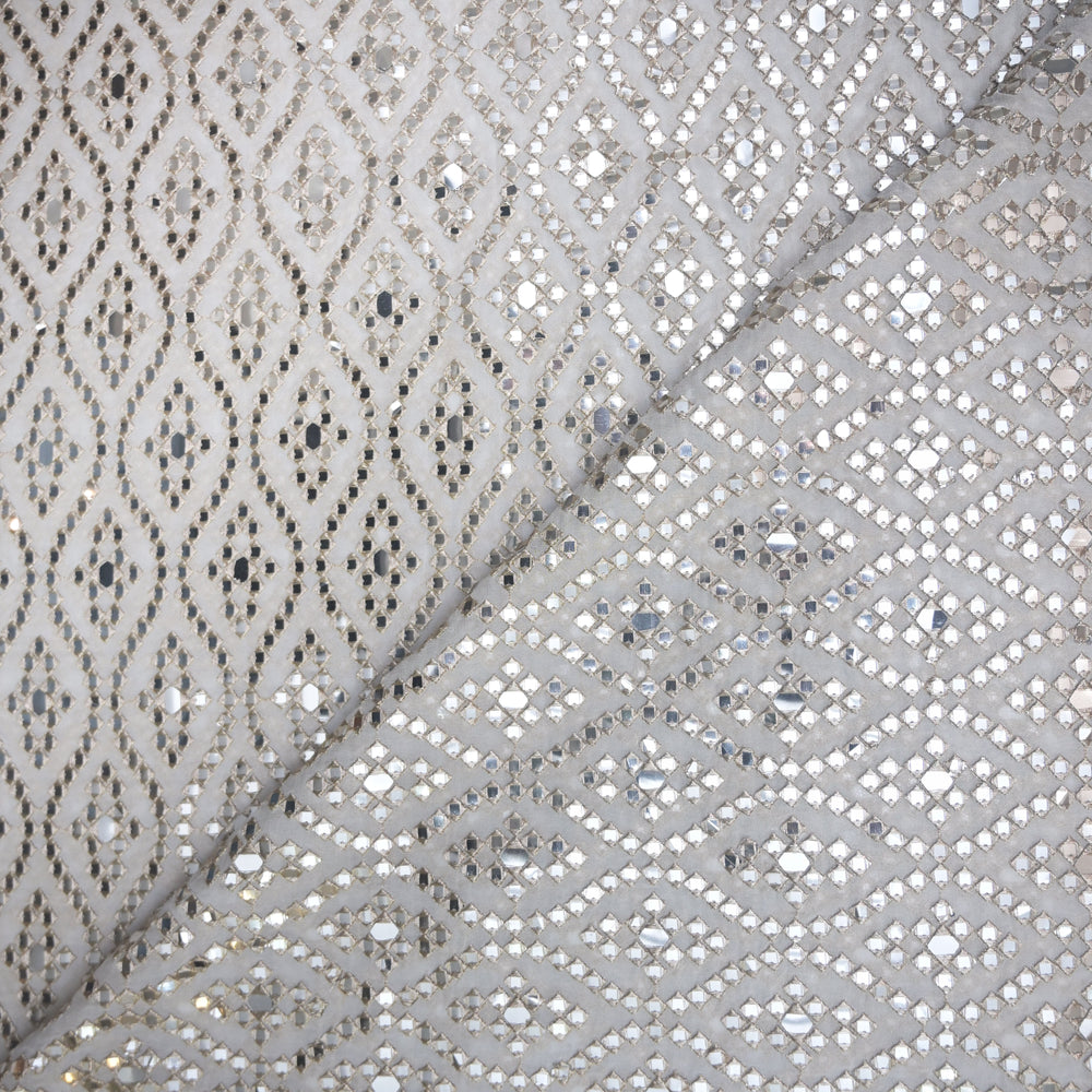 White Georgette Dyeable Fabric with allover Zari Mirrorwork & Sequins Embroidery