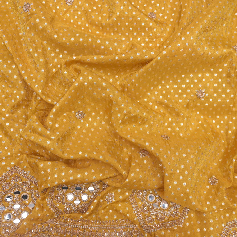 Yellow Crepe Fabric with Zari & Mirrorwork Embroidery