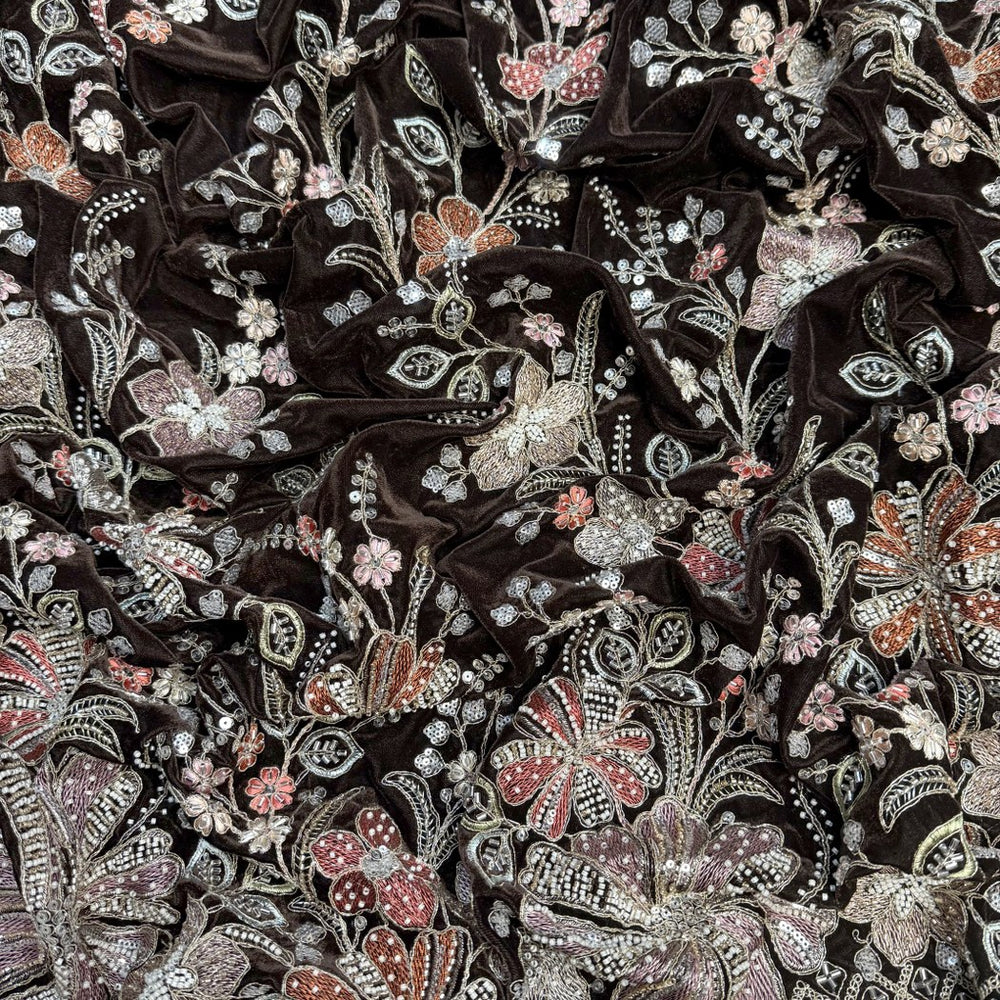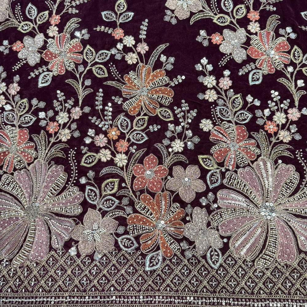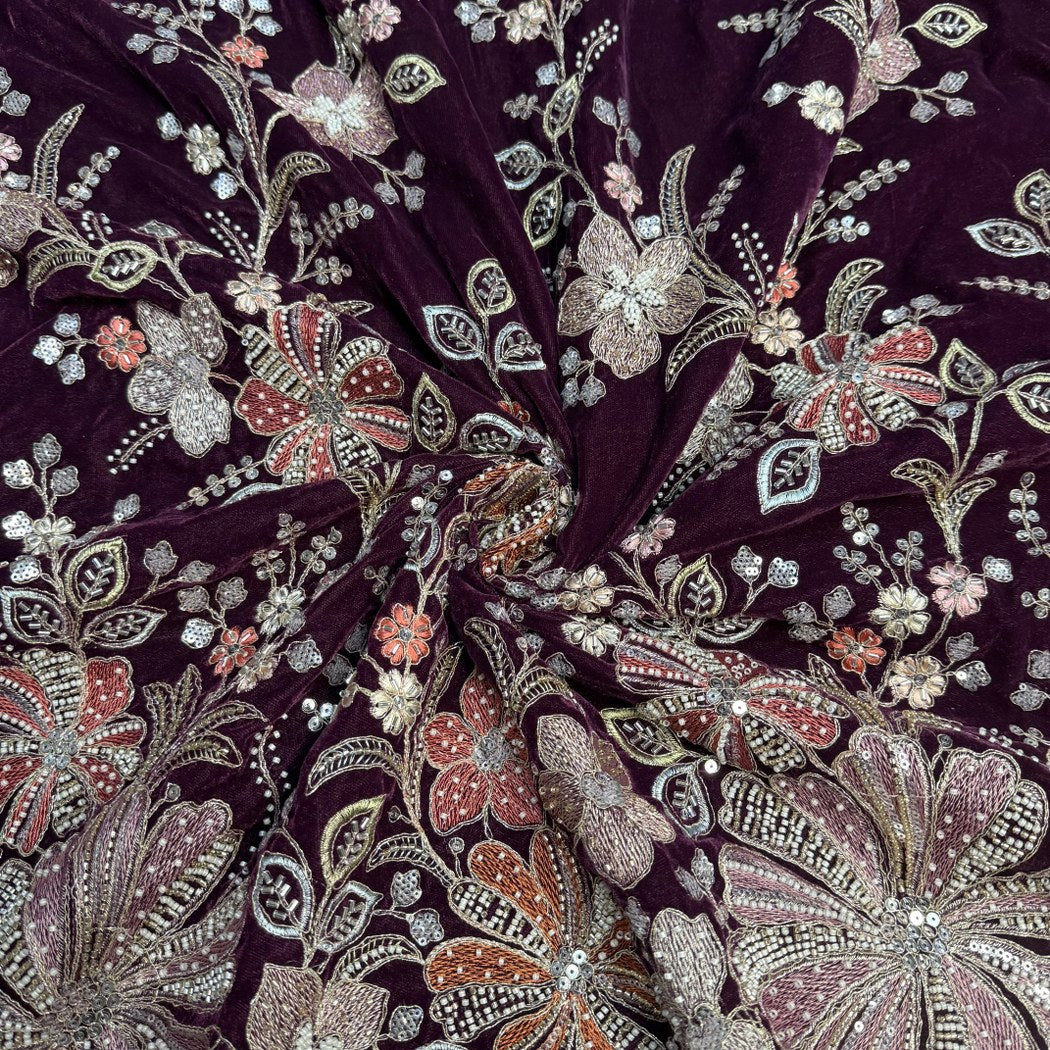 Velvet Moti Thread With Sequins Embroidery Fabrics