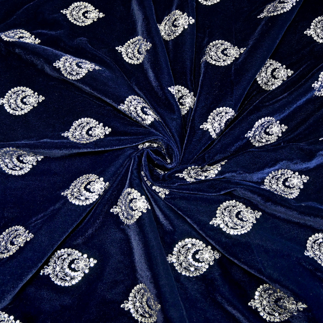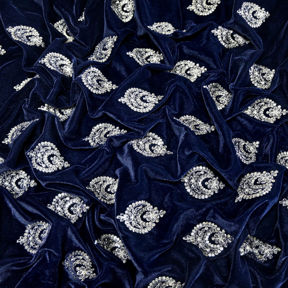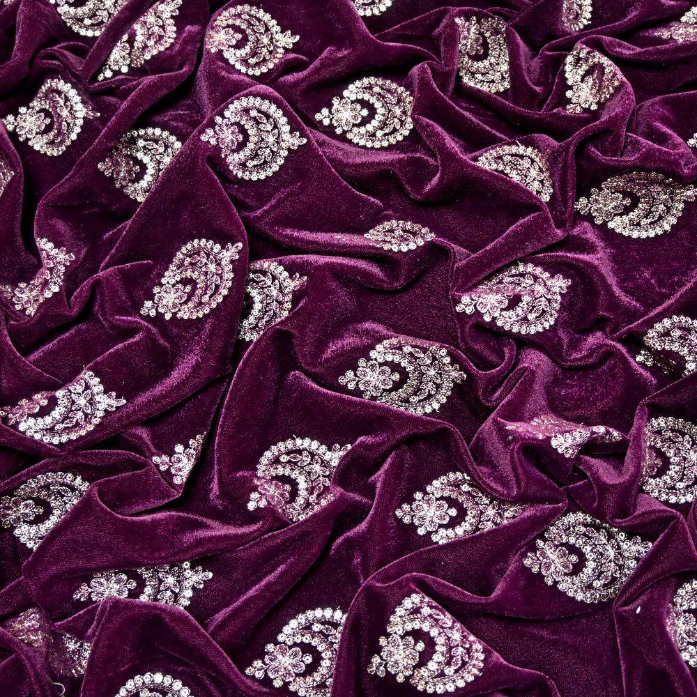 Velvet Moti With Sequins Embroidery Fabrics
