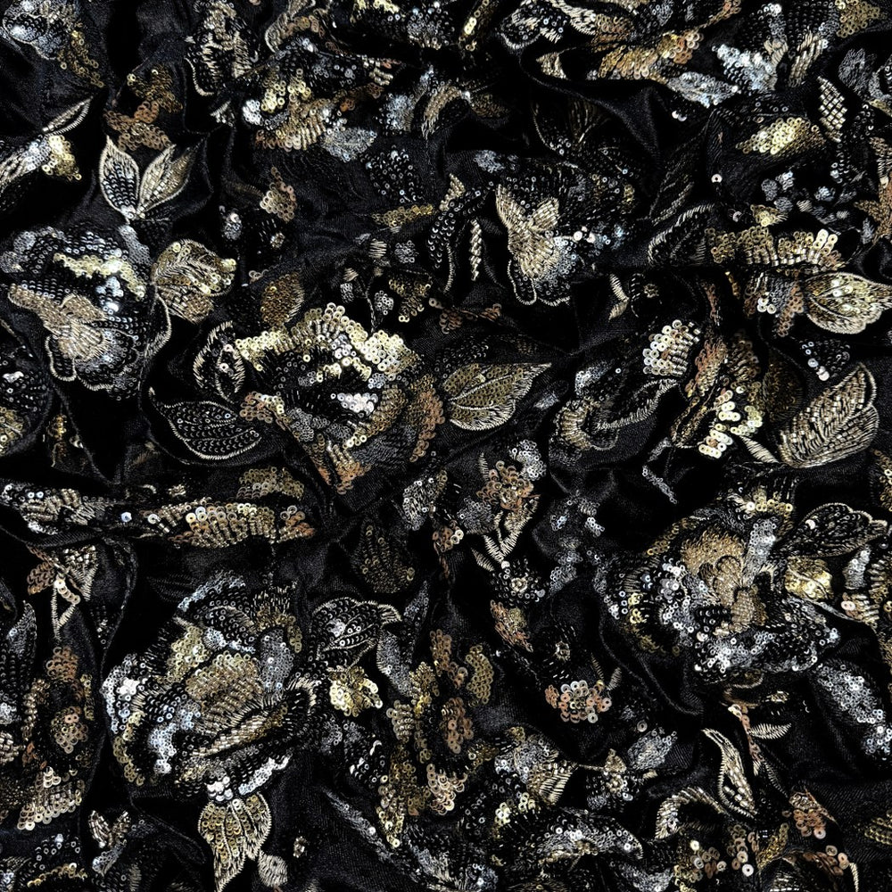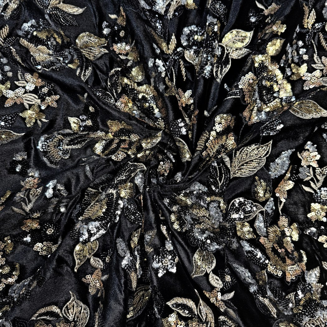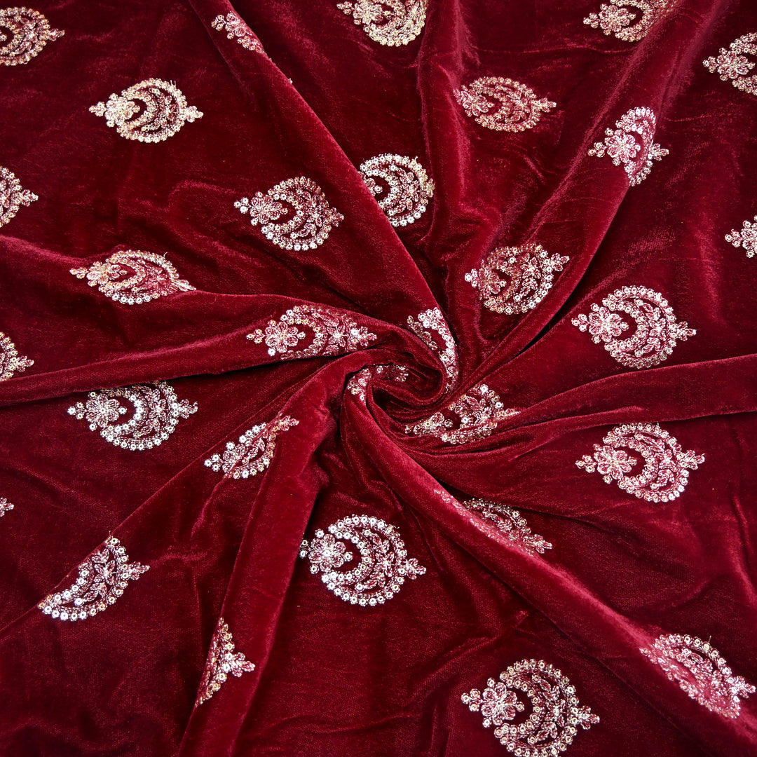 Velvet Zari With Sequins Embroidery Fabrics