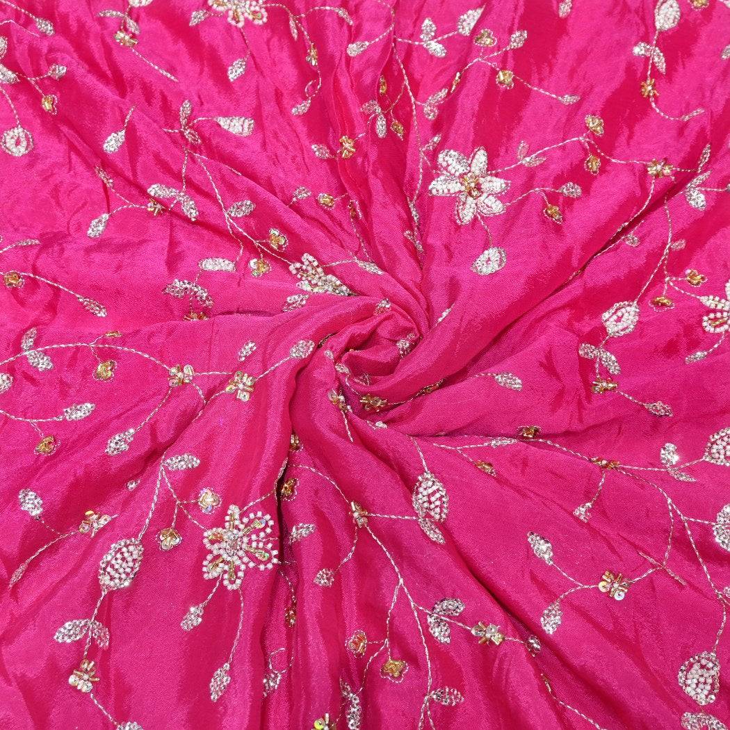Dyed Chinon Moti Sequins Embroidery Fabrics