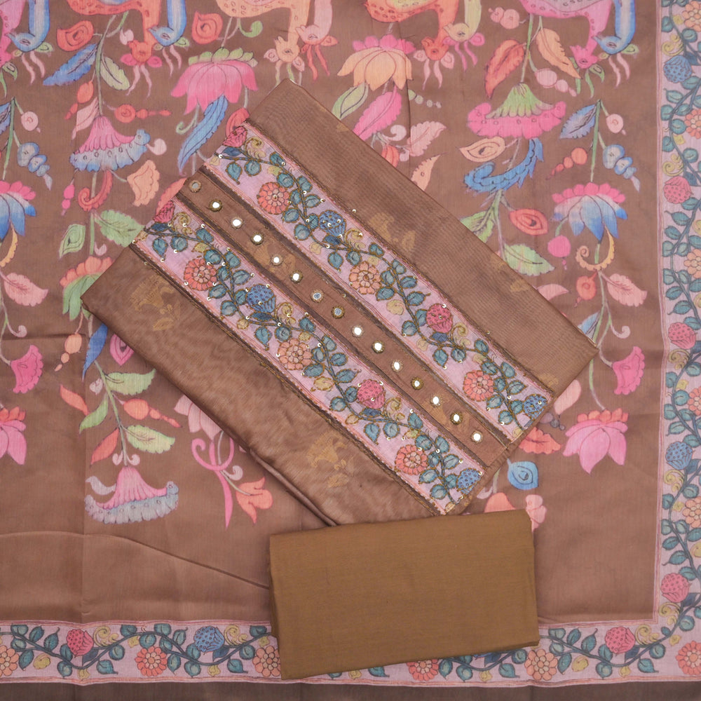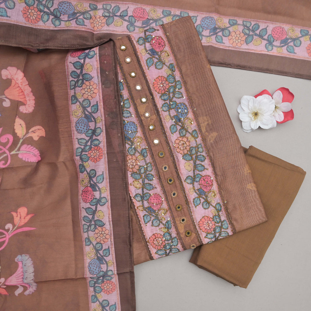 Brown Tussar Silk Unstitched Suit Set
