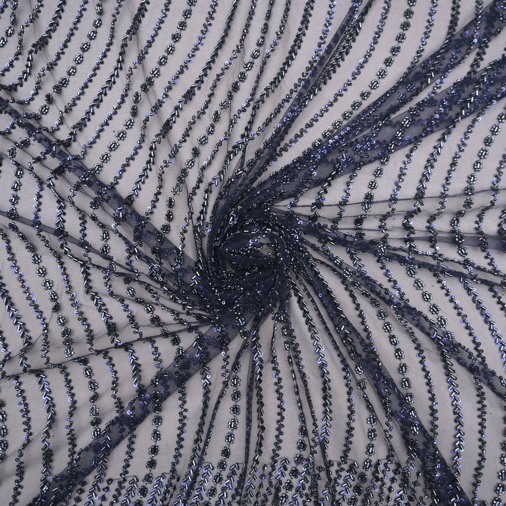 Blue Imported Cut Work Sequins Embroidery Fabrics