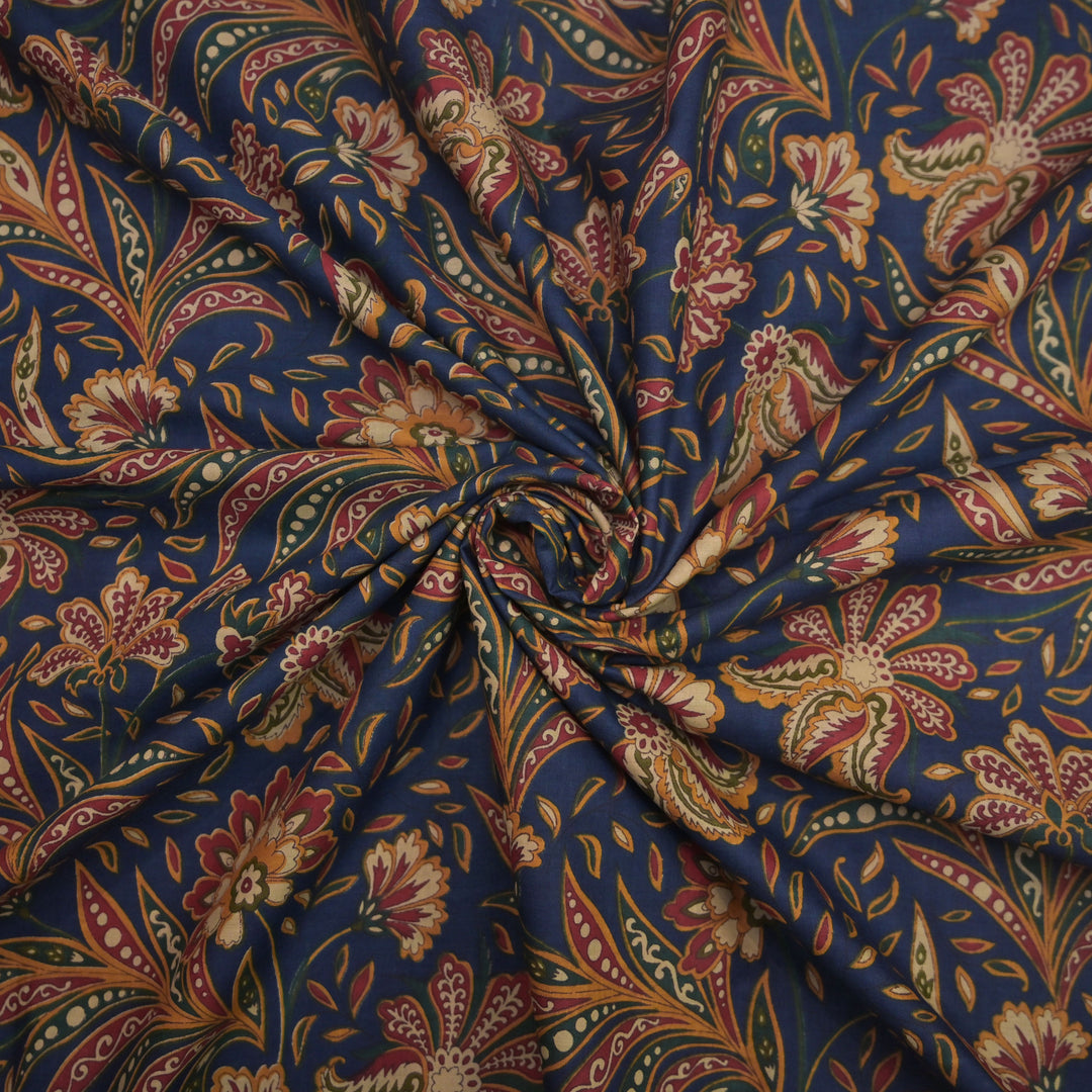 Blue Modal Satin Fabric in Digital Print