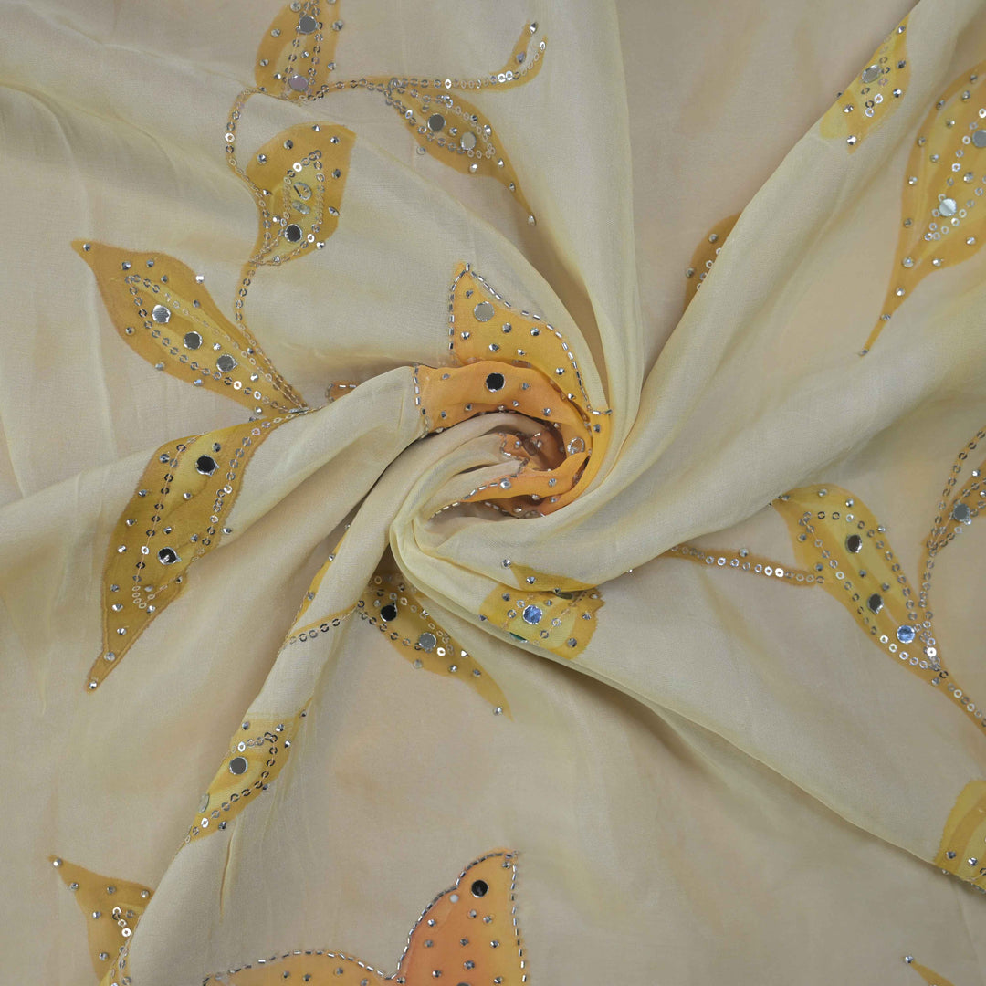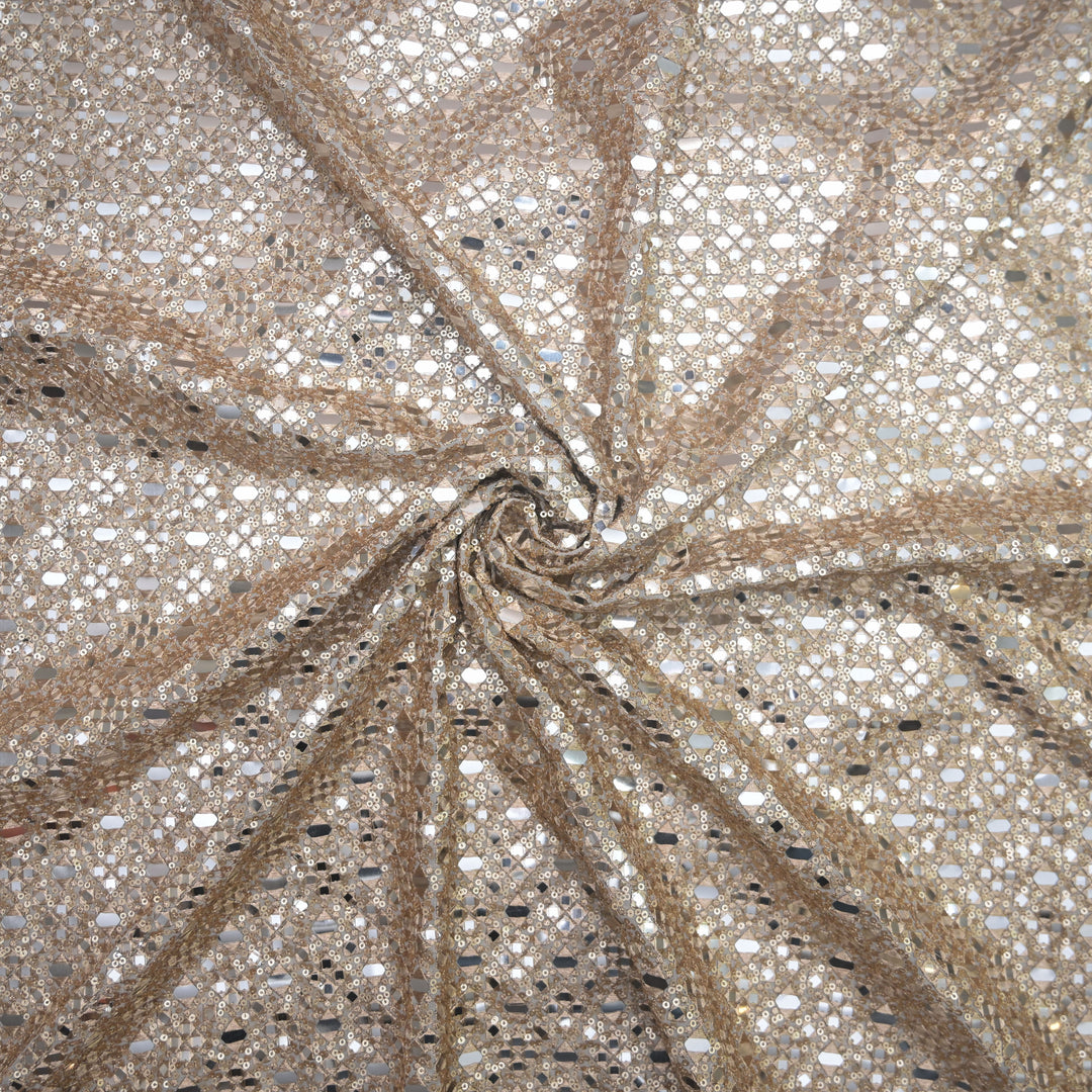 Champagne Gold Georgette Dyeable Fabric with Zari Mirrorwork & Sequins Embroidery