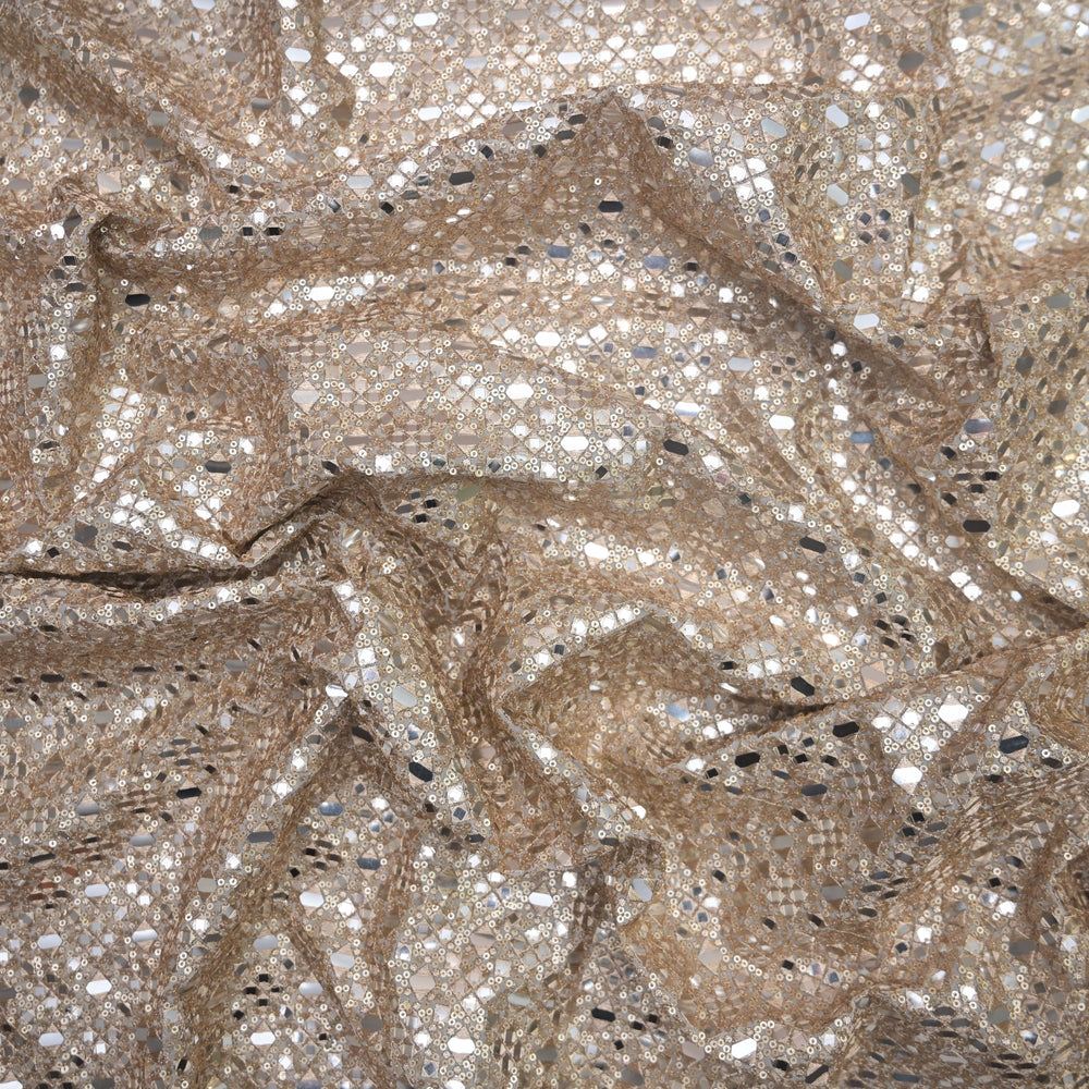 Champagne Gold Imported Net Fabric with Cutdana Embroidery