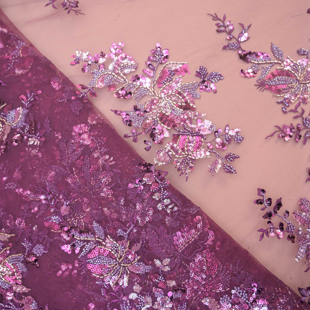Cream Floral Net Cut Dana & Sequins Embroidery Fabric