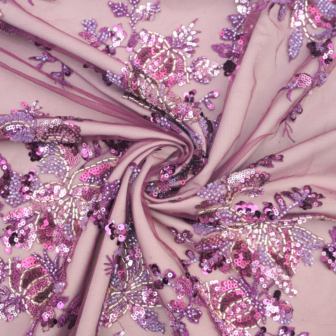 Coral Pink Tissue Fabric with allover Sequins, Stone & Zari Embroidery