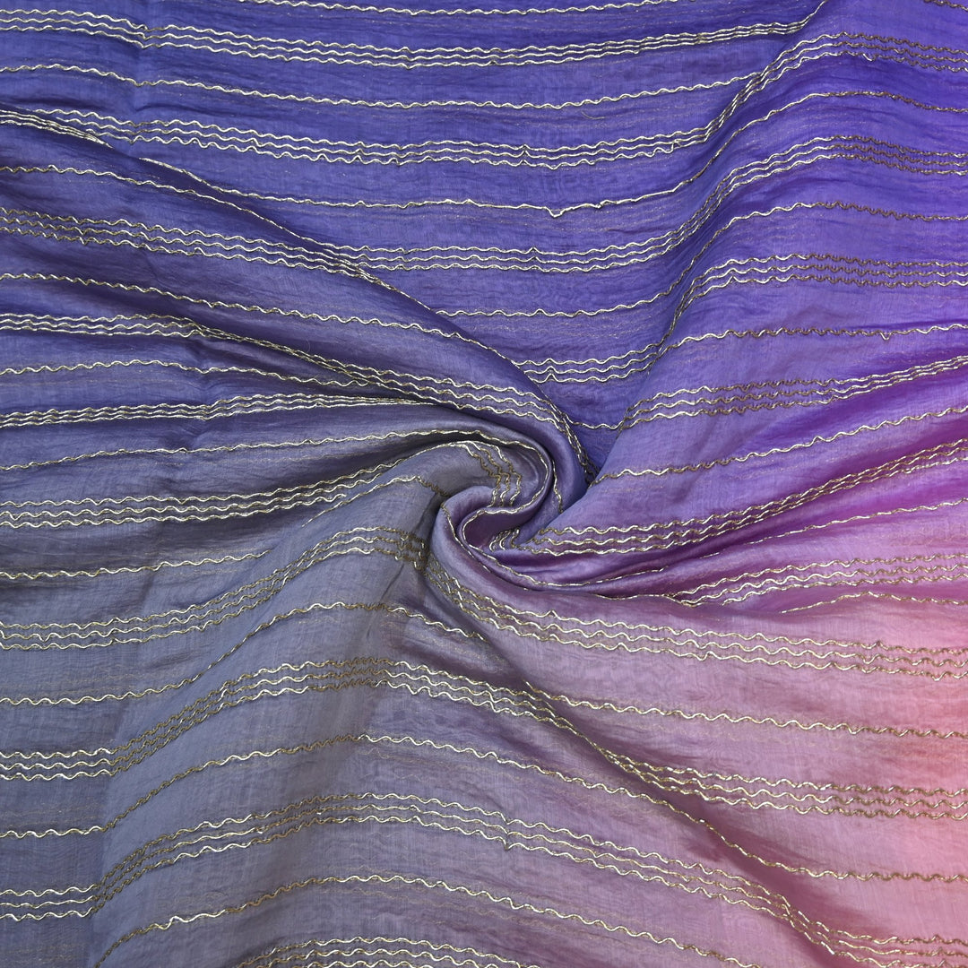 4D Shade Chanderi Gota Zari Strip Embroidery Fabric