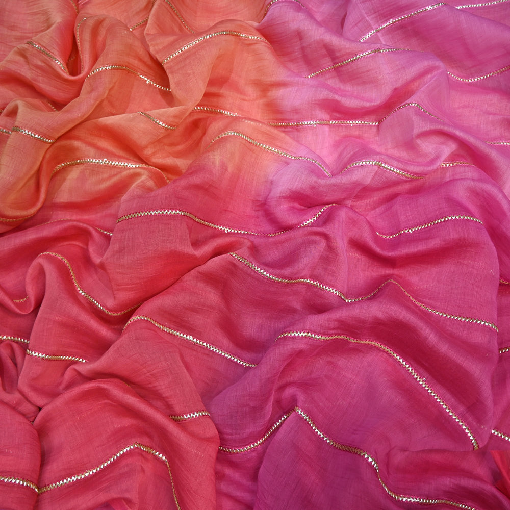 4D Shade Mul Chanderi Gota Embroidered Fabric