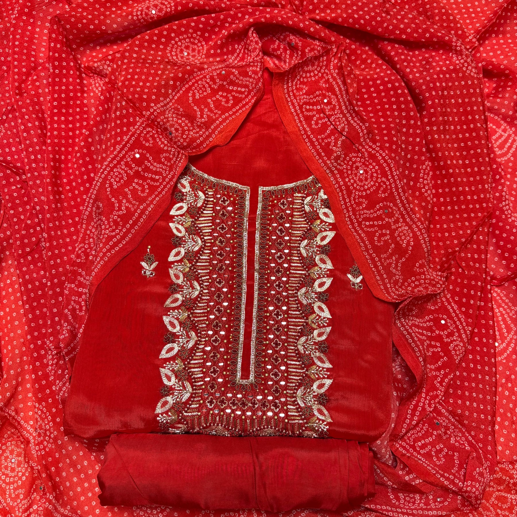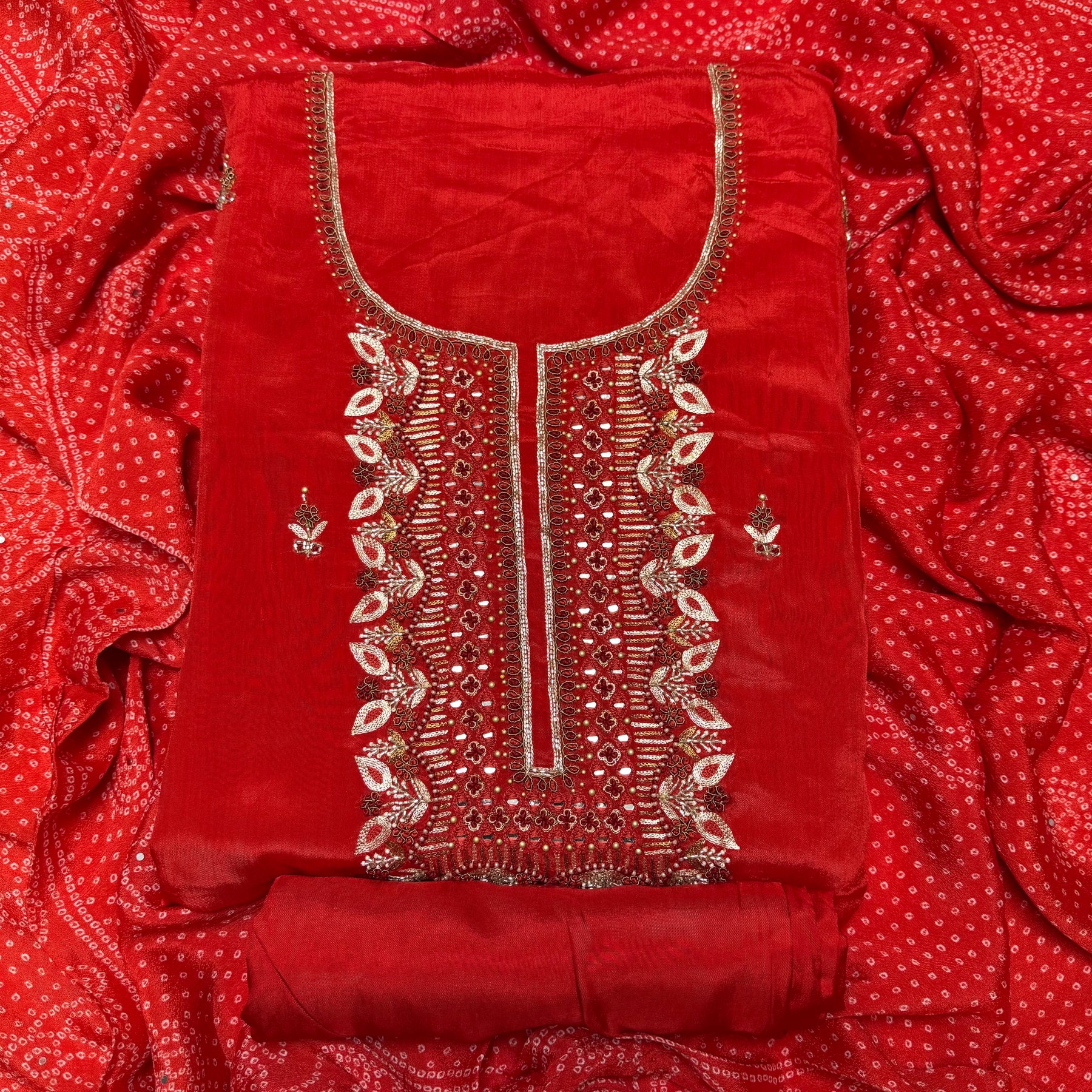 β¨ Dupatta β Exquisite Chinon Bandhani print, highlighted with intricate mirror work β a perfect fusion of heritage & artistry.