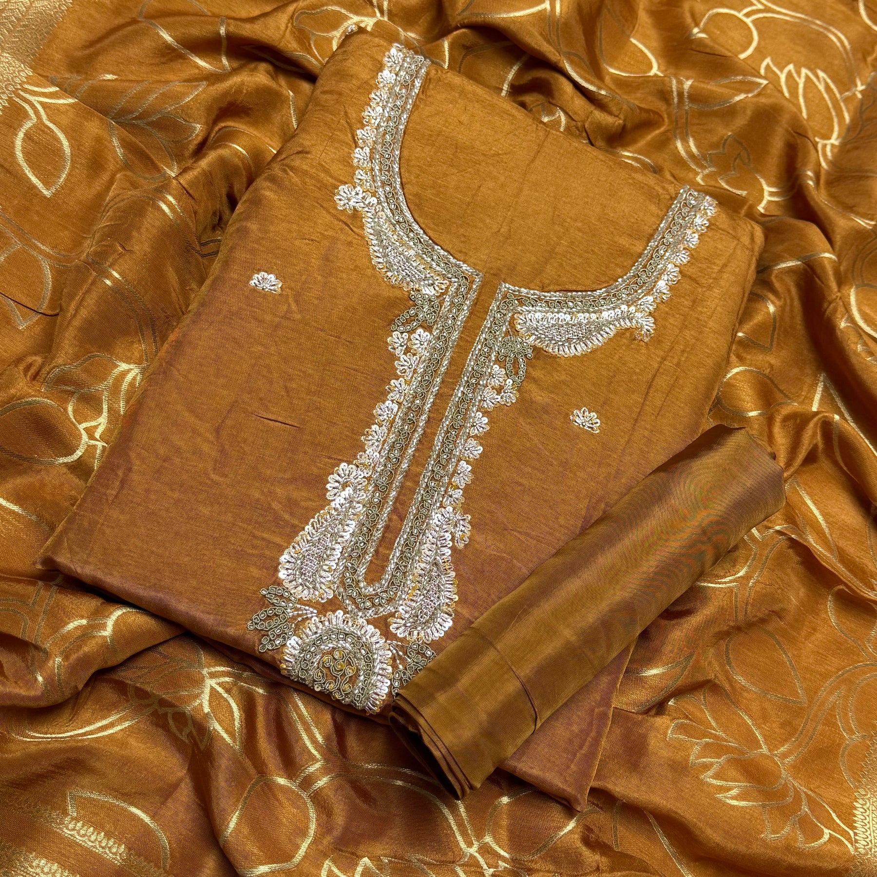✨ Chinon Cutdana & Sequins Work Unstitched Suit Set