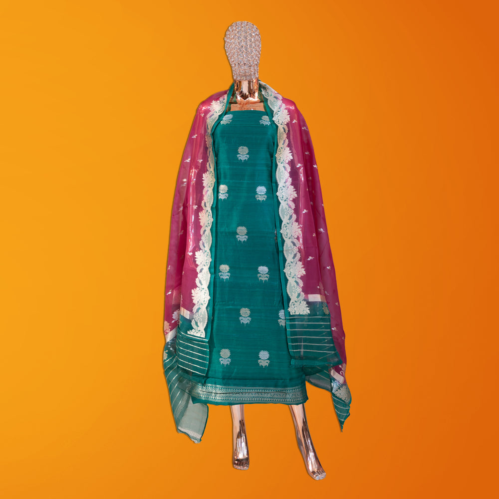 Product Name: Pure Raw Silk Banarasi Zari Unstitched Suit Set