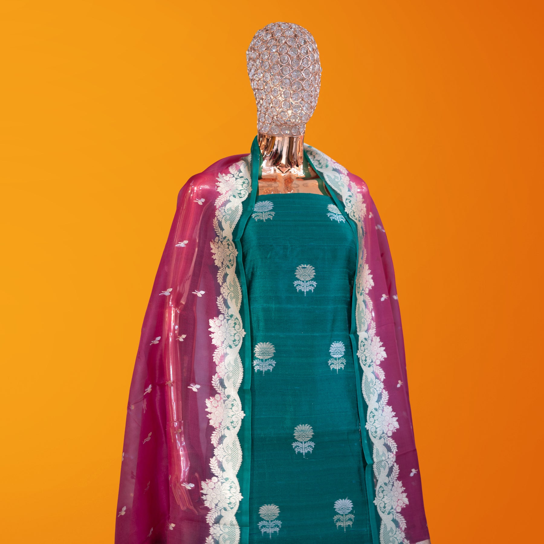 π« Pure Raw Silk Banarasi Zari Unstitched Suit Set